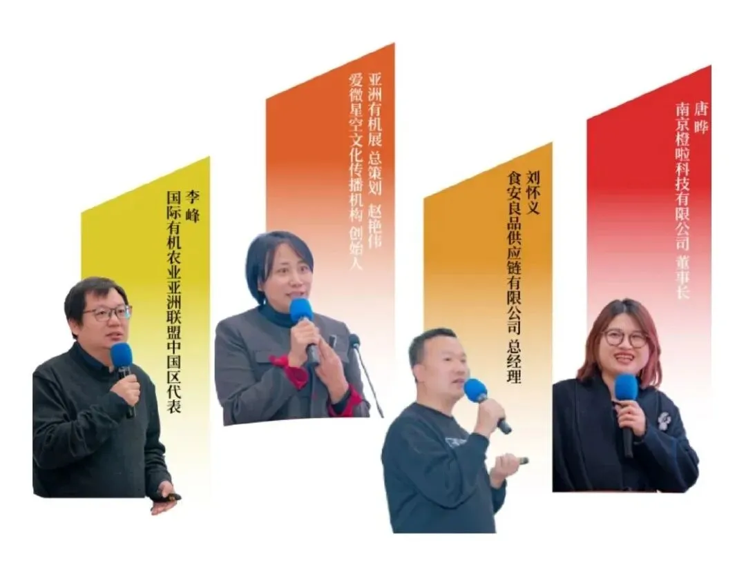 启动仪式现场,行业大咖云集,思想碰撞激烈。中国农业大学教授乔玉辉、南京农业大学有机研究所创始所长和文龙、国际有机农业亚洲联盟顾问委员会主席周泽江等多位行业领军人物发表精彩致辞,深度解析亚洲有机生态共建的核心路径与产业发展新机遇。在圆桌论坛环节,有机产业界代表围绕 "共建亚洲有机产业链" 主题,分享从业心路历程与行业发展思考,为产业协同发展建言献策。