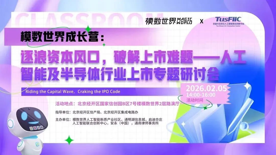 主办单位:模数世界人工智能新质产业社区,通明湖信息城、启迪亦庄人工智能联合创新中心,安永(中国),通商律师事务所、国泰海通证券