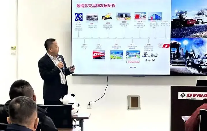 活动伊始,戴纳派克中国生产总经理米少波先生向与会客户系统介绍了戴纳派克品牌发展历程及中国本土化战略。他提到,戴纳派克作为源自欧洲具有九十余年历史底蕴的老牌路面设备提供商,在深耕中国市场二十余年间,始终以“贴近客户需求”为核心,通过持续的技术投入,构建了覆盖摊铺、压实等全场景的产品体系。目前,戴纳派克在中国已形成集研发、生产、销售、服务于一体的完整架构,能够快速响应区域市场变化,为客户提供高效、可靠的解决方案。