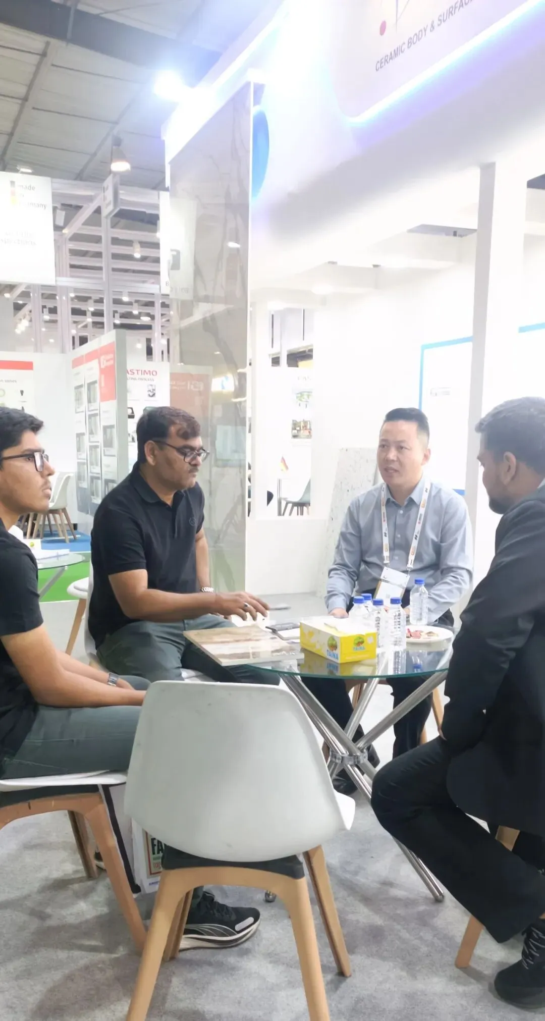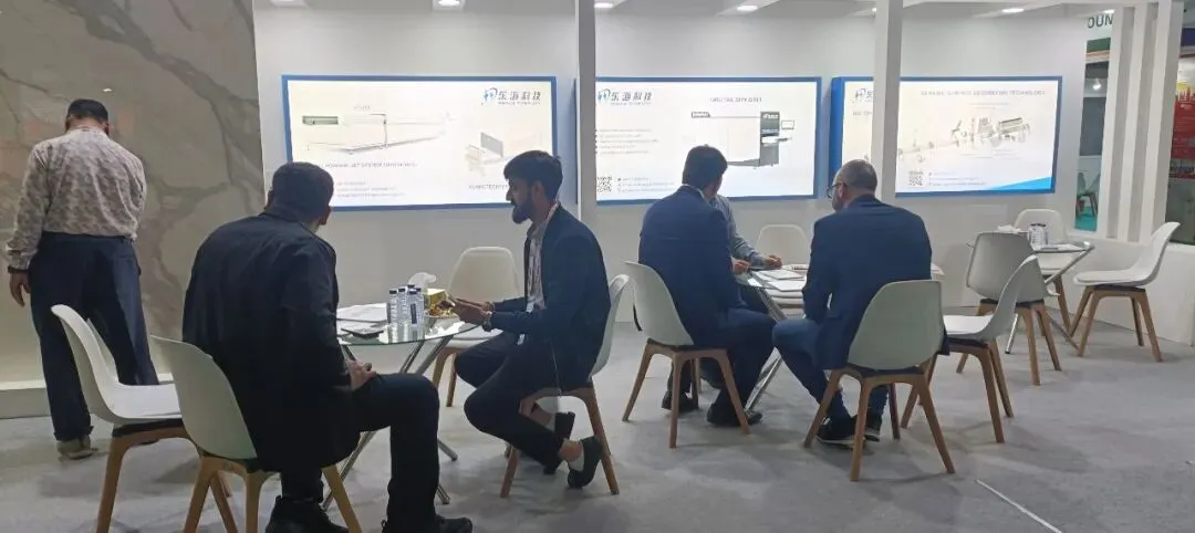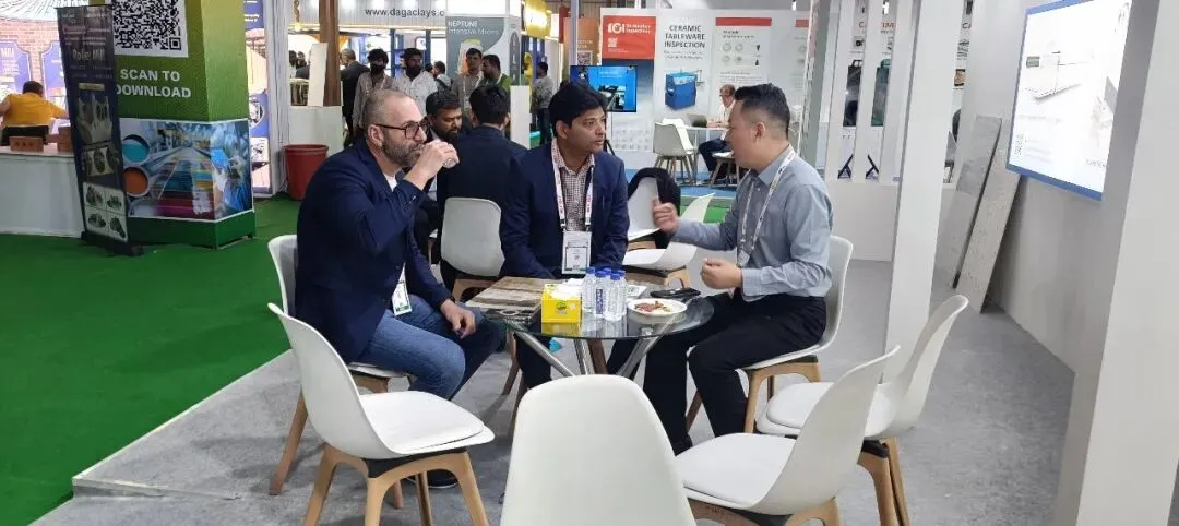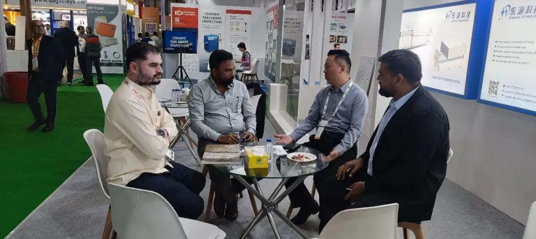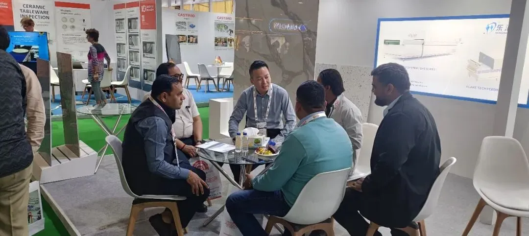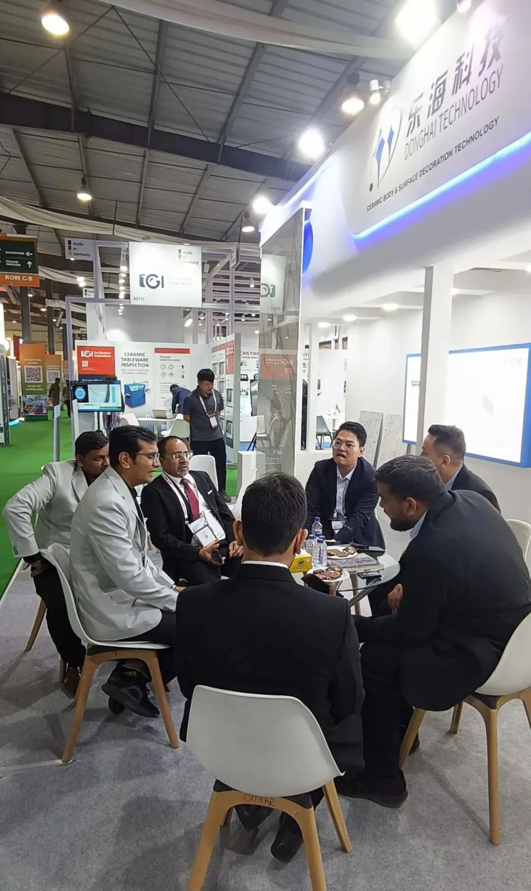 展会第二天,“东海科技”展位依旧人气爆棚,往来咨询的采购商络绎不绝,既有来自印度本土各大陶瓷产区的企业代表,也有远道而来的中东、非洲等地区的行业伙伴。