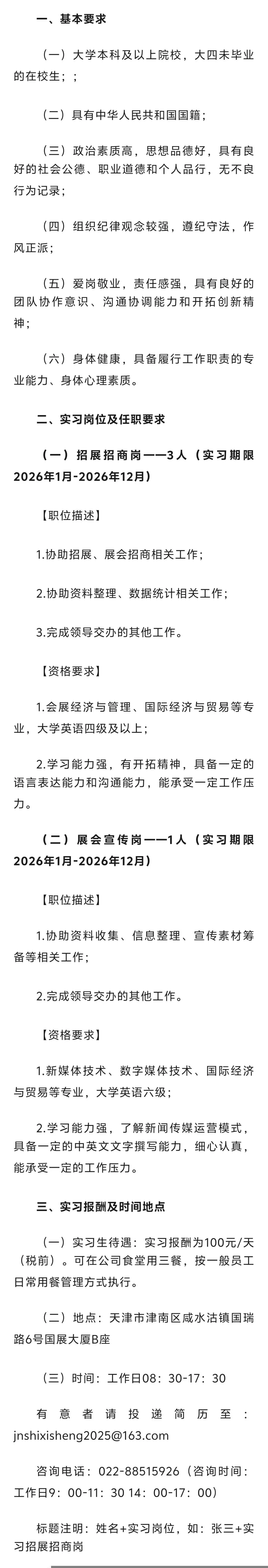 【招聘信息】 | 国家会展中心(天津)有限责任公司2026年实习生招募公告