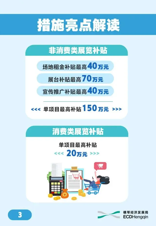 对运用智慧化技术的展览,最高补贴30万元人民币;对绿色展台面积过半的展览,给予一次性奖励10万元人民币;符合碳中和认证的展览,最高可获补贴3万元人民币。