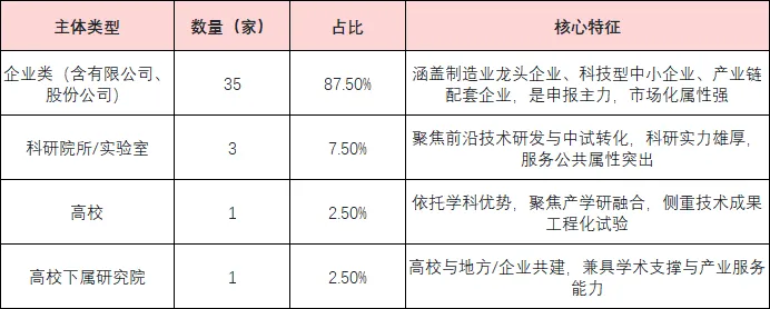 基于湖北省第一批省级制造业中试平台培育建设名单(40家),结合“51020”先进制造业产业集群规划及申报主体属性,分类如下: