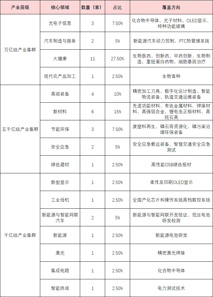 涵盖生物医药、医疗器械、健康食品等领域,拥有人福医药、东阳光、禾元生物等龙头企业,多款产品全国领先。