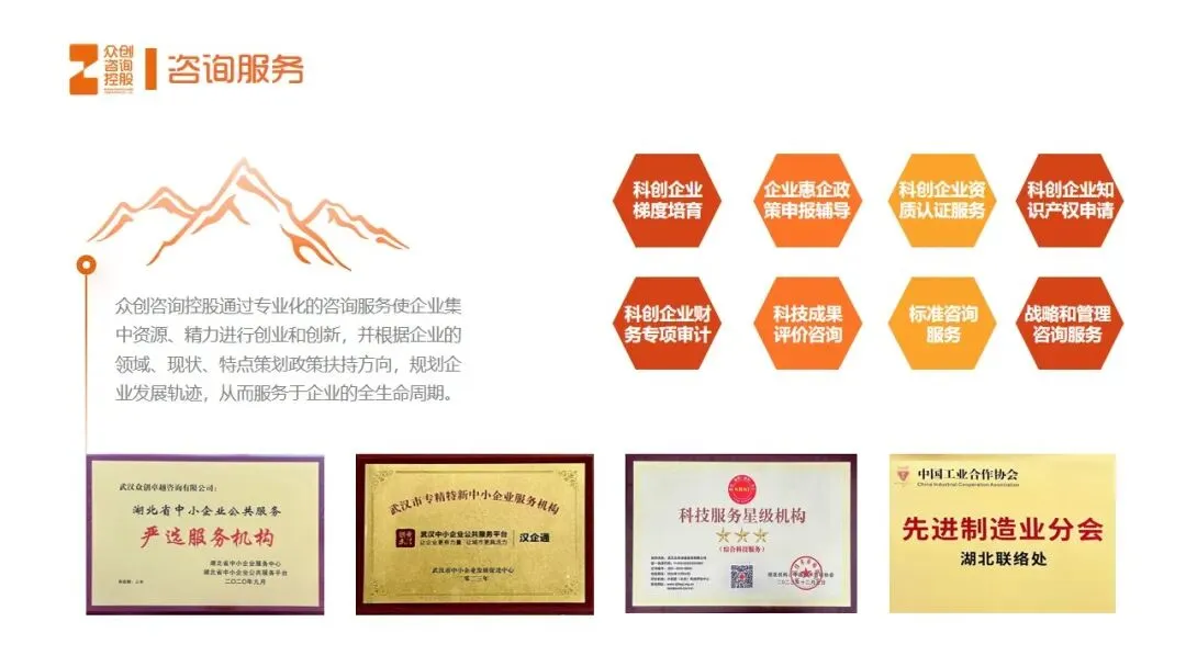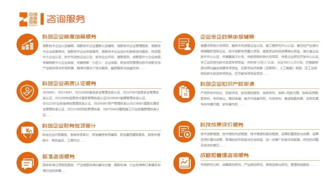 众创咨询控股致力于为企业提供领先的创业、创新发展综合服务,通过专业化的咨询服务使企业集中资源、精力进行创业和创新,并根据企业的领域、现状、特点策划政策扶持方向,规划企业发展轨迹,从而服务于企业的全生命周期,包含高新技术企业辅导认定、企业知识产权、战略发展等全业务流程,为企业创新升级提供强大工具及配套服务。需要联系我们的企业朋友可以后台私信留言或联系:众创咨询控股17786145442!