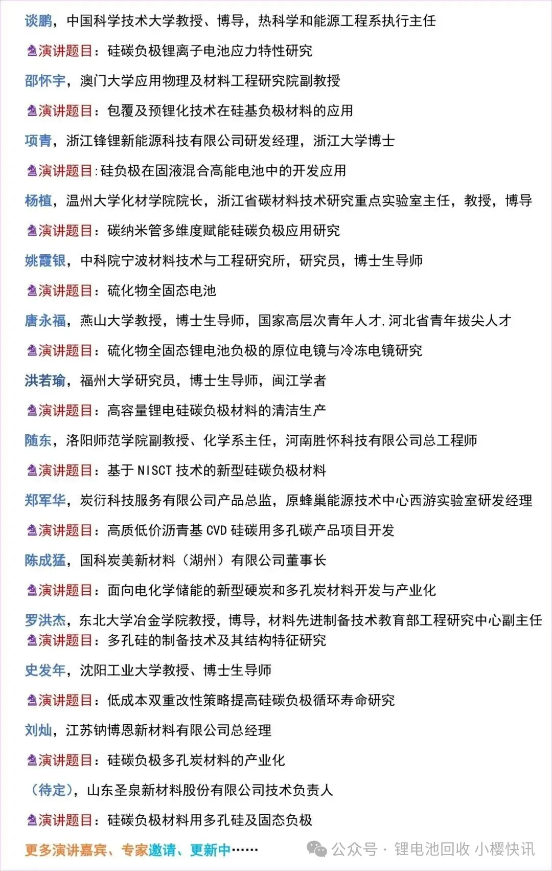 1、特惠名额280个,2月10日前报名可享受特惠名额,每单位限2人;(免费对象包括电池厂、正负极材料企业、汽车主机厂),含餐费和资料费,开会议费发票。