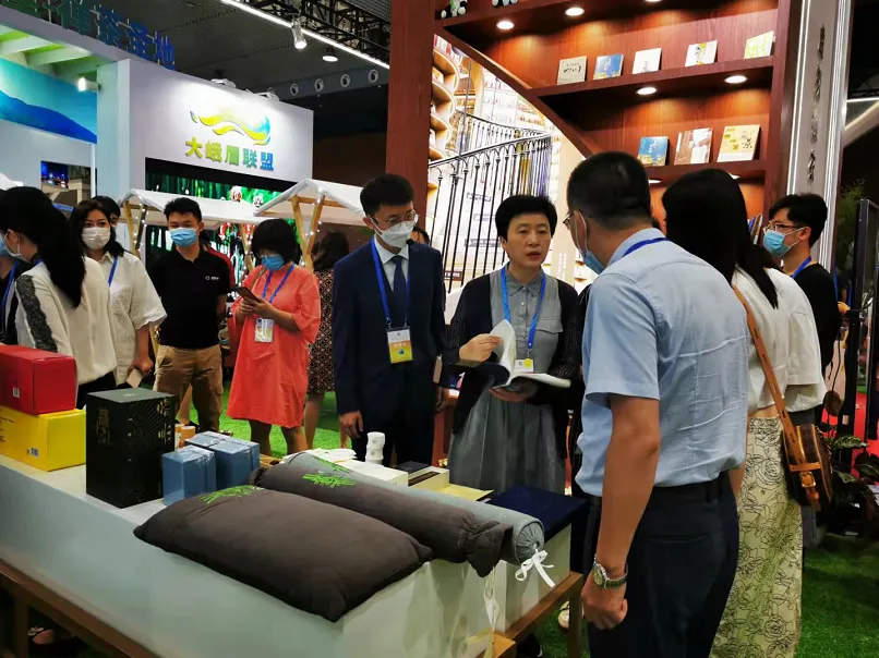 ▲成都市文旅局多央拉姆局长莅临展位了解展品信息