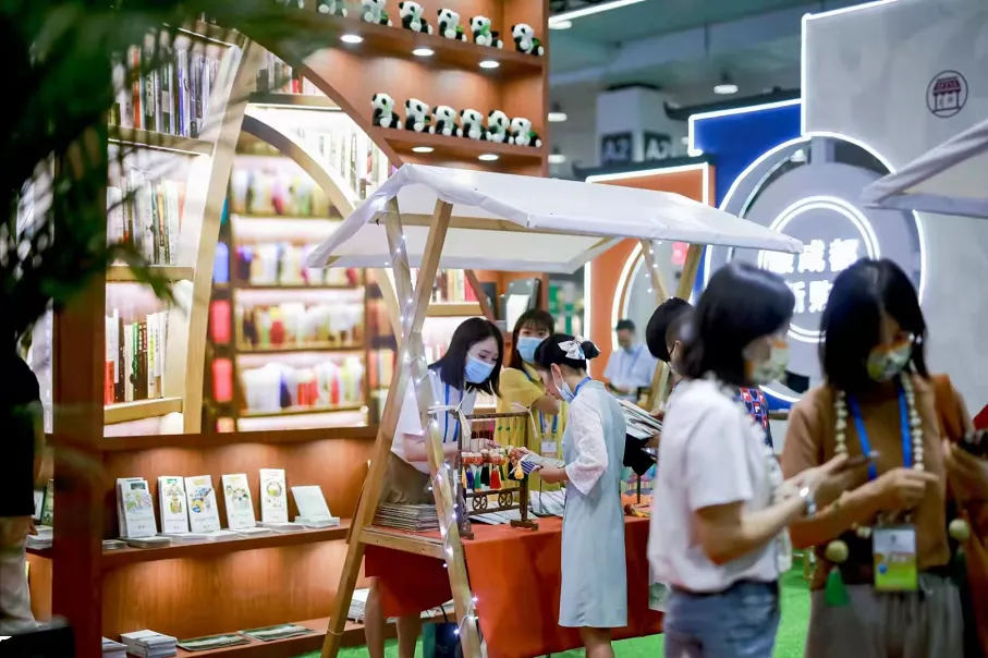 ▲亮点!展台将成都融创茂钟书阁的画面搬到了现场。