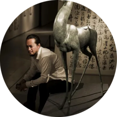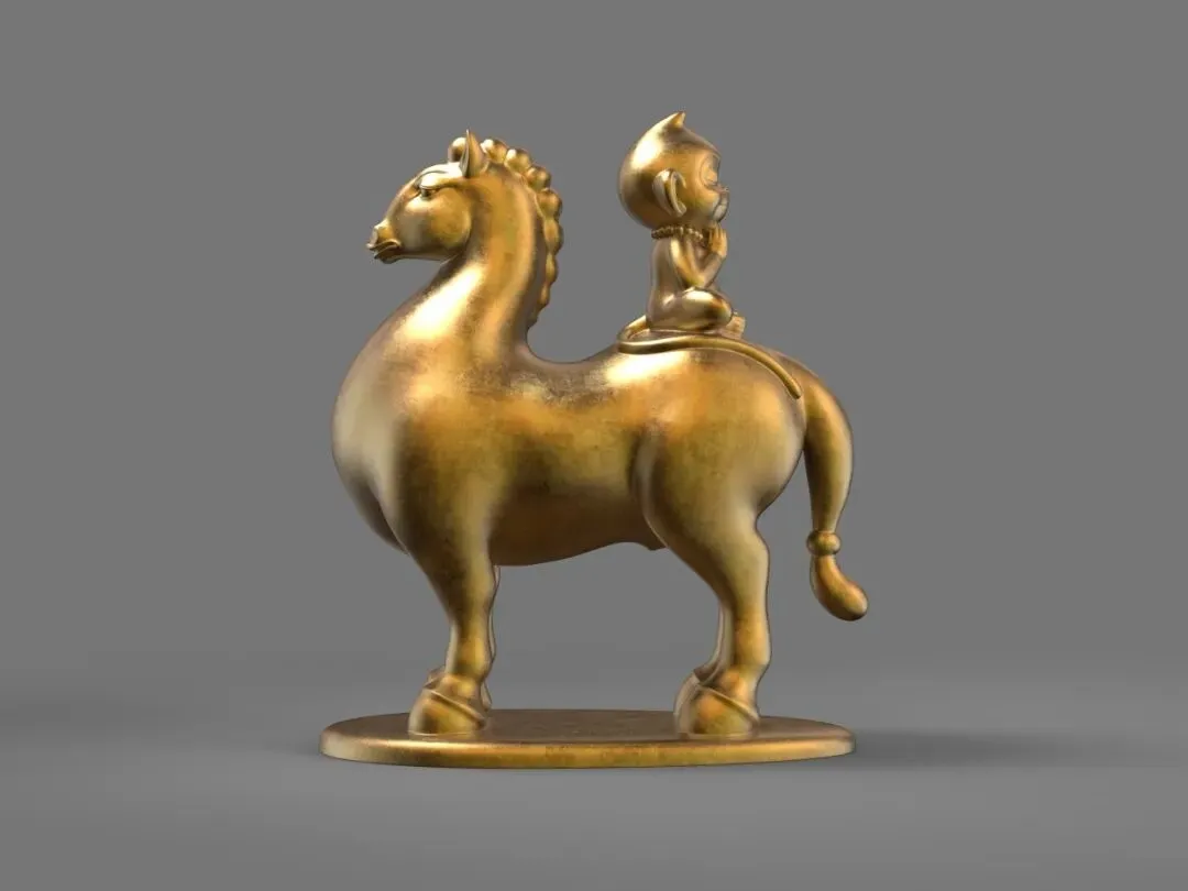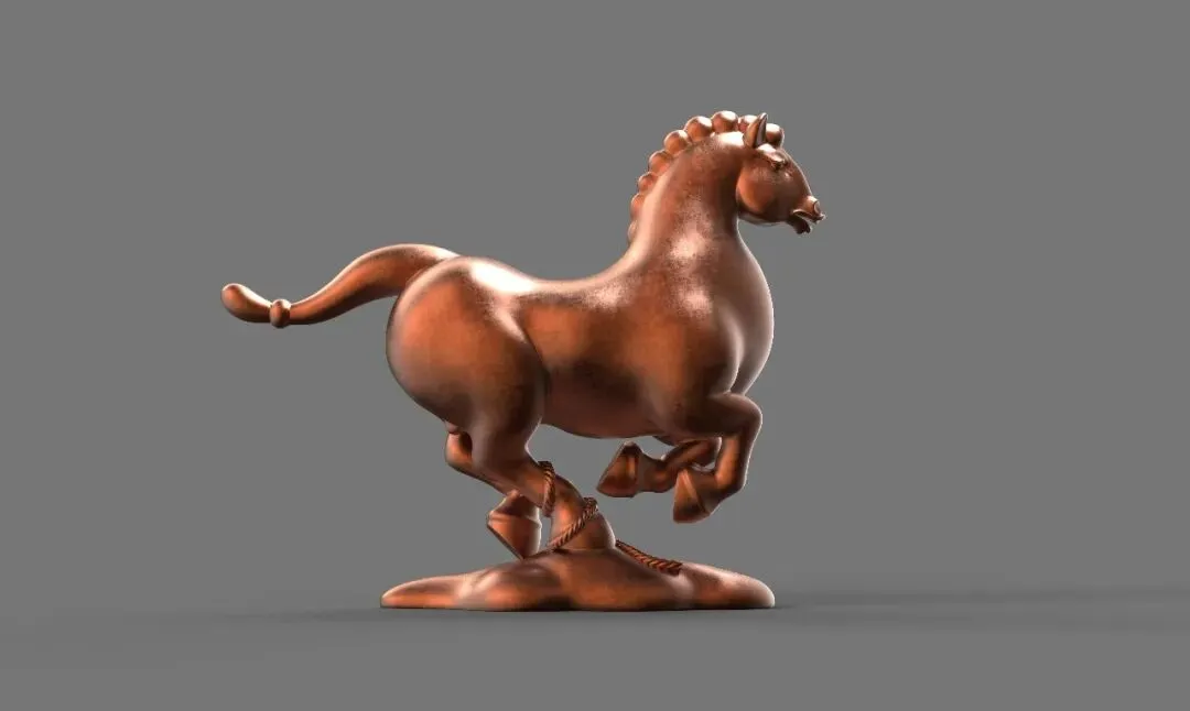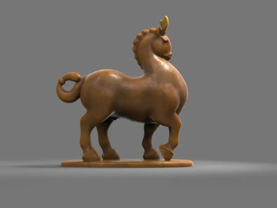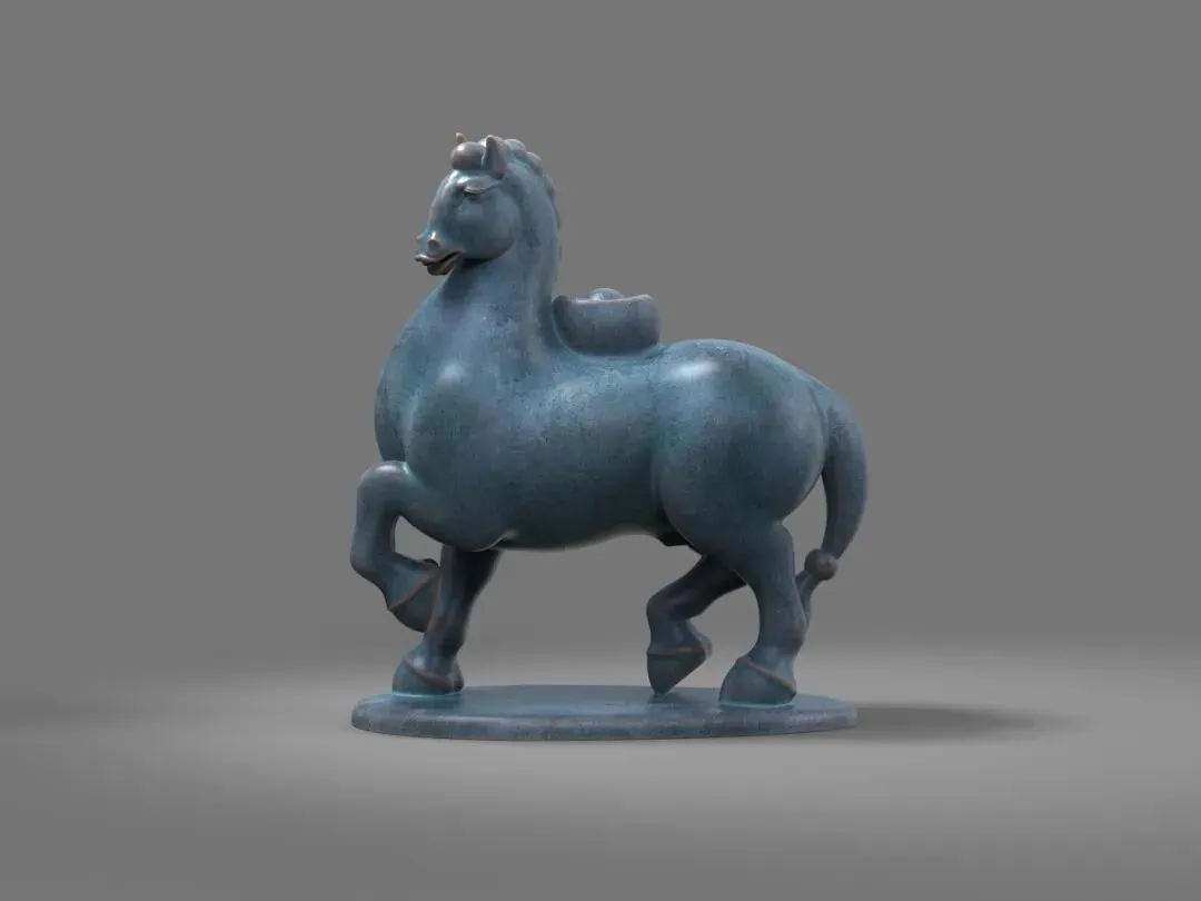 可能每一个雕塑家对骏马都有一种塑造的冲动,因为它足够健美神俊,然而艺术史的悠久,经典范式的普及,已经让塑马变得极具挑战性,如何能开辟个性与新意?当我看到陈建华老师为丙午新春推出的系列八骏时,我的脑海里迅速地把汉唐宋元的马翻越,又把西方古典主义与现当代雕塑中的马跨过,眼前这些夸张的造型如此蓬勃独特,完全打破了我的审美惯性,却被一股圆浑的气流鼓动着神游万里,仿佛置身热烈的音乐会场,著名的男高音歌唱家帕瓦罗蒂正引吭高歌《我的太阳》,气流在他足够宽阔的胸腔腹腔内蕴蓄回旋,经头腔爆发出浑厚、坚实而高亮的歌声,震彻云霄,红尘里要有如此阳刚辉煌的音气才足以超凡拔俗。雕塑无声,而八骏有声,我听到了雕塑中的高音C。