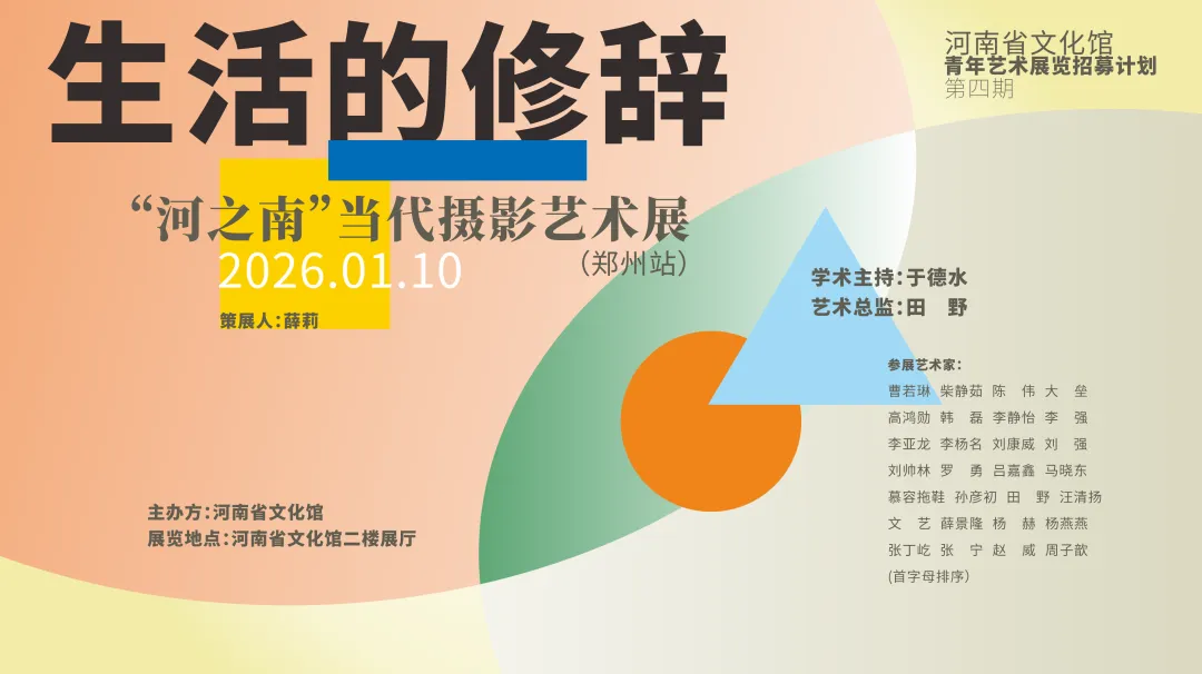 2025年,勉强总结一下的话,做了不到两个展览:年初在马街书会落地一个独立的露天摄影展《众说——马街书会三人联展》;下半年策划了这个《生活的修辞》,落在郑州地标大金蛋中的河南省文化馆。说“不到”,是因为后者的展出时间是2026年元旦后。布完展闲下来那天,和馆里一位保安大叔闲聊,他说,好像见过你来馆里很多次啊,是不是都是参展?第一次……我想了想,09年吧,那是我人生中第一次获一等奖,摄影的。当时应该是跟着平顶山美术馆组织的大巴车来的郑州,那应该也是第一次走进大金蛋。现在想想,毫无疑问,进的就是文化馆,因为我领奖的那个舞台,看起来就是文化馆门口的这块儿。那就早了啊!那时候我还没来文化馆。保安大叔有点唏嘘。我顿时觉得暴露了年龄……不太符合这个“青策人”计划中的第一个字儿了。好在,这个展览里的作者们,全都是年轻人,和年轻心态的人。做这个展览,有个前因。25年初,我就答应了郑州的刘强老师,帮忙给“河之南”在郑州找个场地或者落个展览,原以为会很容易,没想到,找了大半年,一无所获。直到看到文化馆的第四届青策人计划开始征稿。既然是个征稿,自然是方案为王,赶紧动起来。先是在“河之南”的作者群里征作品。“河之南”是一个河南新一代摄影人自发成立的展览品牌,已经在新乡和平顶山的民营美术馆做过两次展览。均前往看过,展览大部分都是作者自发前往布展和交流,每个现场都很热闹。据年长一代摄影人认证,这种氛围,有点让人回归上世纪八、九十年代的摄影圈。征集稿件中,一部分是科班生,作品里带着学院范儿,很整齐,也大多都在平遥见过;一部分是扫街和小情绪;还有一部分是人在他乡的速成品。几乎没有宏大叙事,也鲜有长期项目——倒也理解,现在的年轻人都太忙了,忙着求学,忙着找工作,忙着上班和讨生活,以前那种可以三五成群背着相机到处走的独立艺术家,在当下这个时代,稍稍有些青黄不接。如果能看到经过时间打磨的作品,那这个人,一定耐得住寂寞。由于这不是巡展,是一场独立落地的展览,我倾向于选择新作品,而不是之前在两地展过的。为此,在这里向一部分没能参展的作者表示歉意。对着征集来的稿件日思夜想的想了足足一周,最终拟了个题:“生活的解药”。以“生活”为题,是因为大多数摄影人都在拍自己身边的风景,看起来,“搞”艺术是抵御平庸的最佳解药。更难的事,“河之南”的展览品牌上还有“当代”俩字。在官方的场地上,想要让摄影作品“当代”起来,可真是一大难题。我不想勉强触碰社会议题最后闹个竹篮打水,在没有任何预算概念的时候,也不想去空谈一些夸张的表达形式。唯一能想象的是,先以“时间折叠”为线索,把朋友圈里的几件可以“当代”的作品串起来,让这个展览“立住”。于是,我在第一时间邀请到罗勇老师的《早!》,李强老师的《3650天》,央美艺术生周子歆的《你什么时候下课?》等作品。于德水老师作为展览的学术主持,前后花了几天时间,把所有征集和邀请来的作品,一组组过目,并给出很多宝贵意见,在德水老师的建议下——也是为了过审需要——展览题目收敛了一些,改为《生活的修辞》;田野老师作为展览的艺术总监,非常给力的邀请到了河南当代摄影的几位关键艺术家,韩磊、孙彦初、慕容拖鞋……众多力量的加入,这让这个展览的厚度又增加了一倍。方案过审的几率大了,下一步就是如何让展览好看,而且,有价值。为了“价值”二字,我决定为这场“生活”做一个“人生专题”:生老病死和身份。但是,除了已知的一组杨赫老师生病期间的作品,其他的均无着落。幸好,黄科大摄影系的汪彬老师十分给力地传来十几组精挑细选的毕业创作,经过一番斟酌,我用两位高校教师和四组高校毕设的作品,将第二版块“成长的烦恼”画了一个圆。为了呈现出“老带新”的格局,最终决定将所有特邀作品分散到每个版块中,尽可能平衡四个版块的学术分量……恰逢秋日,天气不热不凉,从第一稿方案起,我的升降电脑桌就再没降下去过。每天早上六点起床,一边喝咖啡、醒神,一边站着过一遍头天晚上搞出来的方案;下班回去吃个简餐,立刻站起来继续搞方案……改了几十稿,终于按时把展览方案投递到组委会。松了口气,索性休掉年假,奖励一下自己。事实上,休假的第二天,就接到文化馆的电话,要求改方案。挥霍了所有年假,一到家,就又开启了闷头改稿的日子。后期的改动,是把原方案中占地两层的展览压缩到一层——也就是说,展线少了一半。为此,颇为心疼地减掉了好几组作品,剩下确定展出的,大部分也压缩了内容和展线。然而这还不是最累的。到了输出制作环节,我忽然意识到,所有文字内容都得重新来过,因为,原方案上的文字,基本都是我应付交稿的潦草为之,方案改了那么多遍,文字却是只字未动。于是,整个元旦假期,我把自己钉在电脑桌前,或站或坐,总之不能离开那三平米的范围……好在,熬一熬就都过来了。从2025年12月20日左右收到过审信息,到2026年1月10日开展,改方案、盯设计、定文字、盯制作、盯布展……三十天,听起来像是一个从从容容游刃有余的时间,只有我自己知道,岂止是匆匆忙忙连滚带爬。没错,这篇转正无望了。后面,我准备用四篇推文,把这个费了我几个月心血的展览分版块详细介绍一下,也算是为自己的一段心血留个