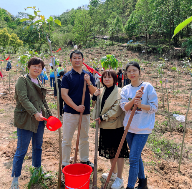 2023 年4月7 日,广州市进口食品行业工会联合会副主席饶霞、广州市食品企业协会党支部书记连培强和发展对象欧阳青、越秀区食品商会党支部入党积极分子蒙桂英代表到花都区花东镇,组织参加本次义务植树活动。