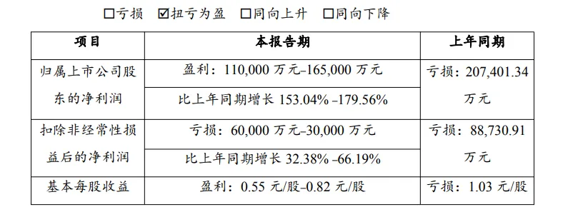 1月28日,赣锋锂业发布2025年度业绩预告,预计2025年归母净利润为11亿元至16.5亿元,扭亏为盈;扣非净利润亏损3亿元至6亿元,上年同期亏损8.87亿元。