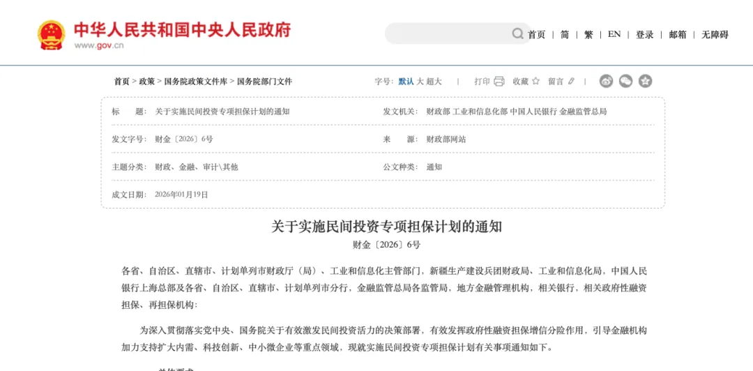 1月20日,财政部、工信部、中国人民银行、金融监管总局联合发布《关于实施民间投资专项担保计划的通知》。此次专项担保计划额度5000亿元,分两年实施。