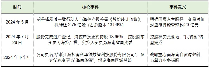 ○ 角色:通过控制海南控股间接掌控海南华铁,是本次股权变动的“战略主导者”;