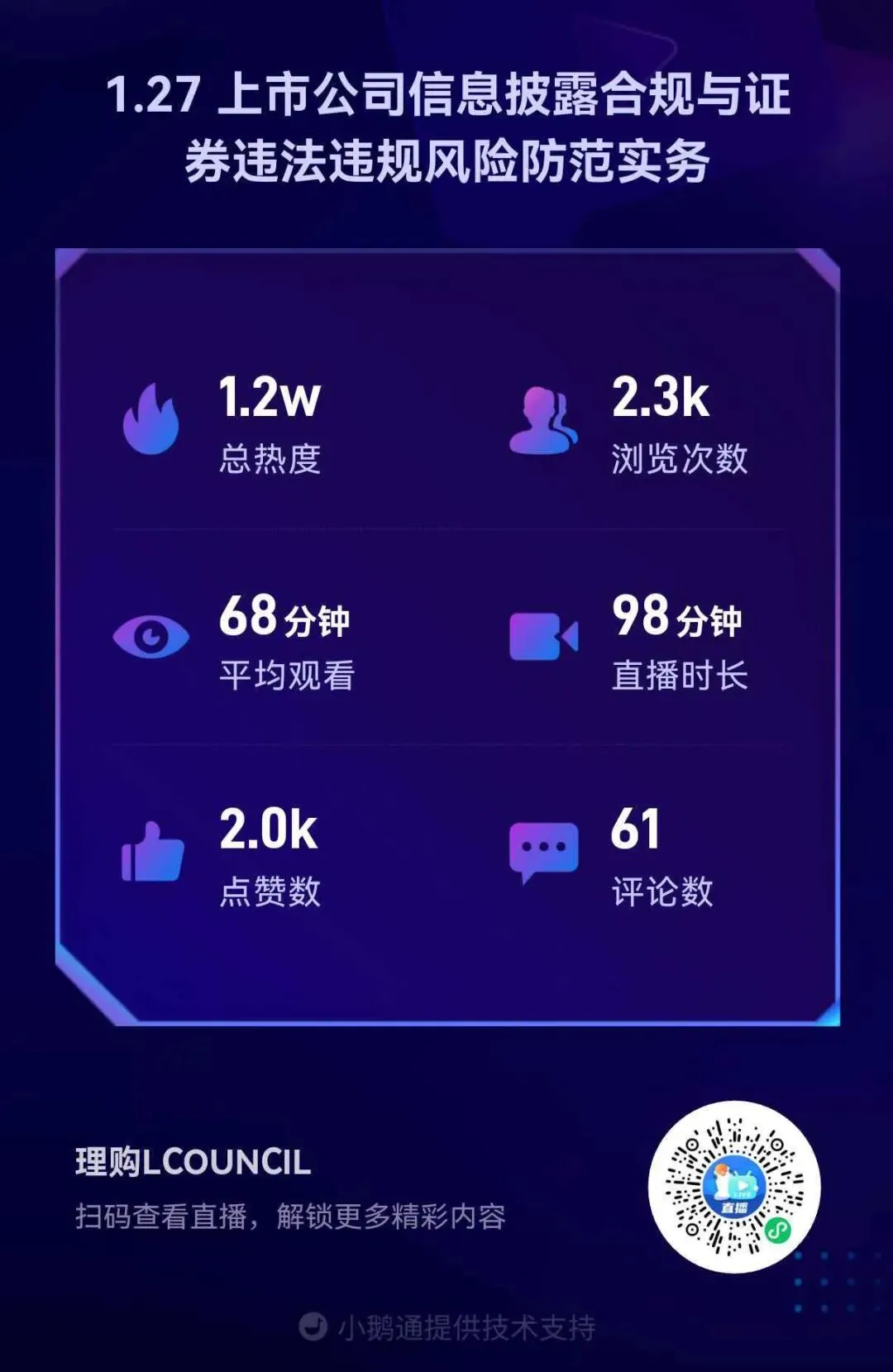 2025年1月27日,德恒证券合规与监管法律服务中心负责人王华堃律师应法律培训平台LCOUNCIL的邀请,面向其会员企业进行了题为“上市公司信息披露合规与证券违法违规风险防范实务”的线上专题分享。本次直播活动吸引了来自上市公司的法务、合规及管理层人士超2,000人次在线观看,反响热烈。