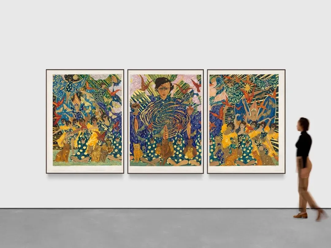 ■作品细节:【1】草间弥生(Yayoi Kusama),《无限之网(SAAX)》,2016年;【2】胡玛·芭芭(Huma Bhabha),《旅者》,2025年;【3】马塞尔·扎马(Marcel Dzama),《我从未从你的肋骨里出来,你却从我的阴道里出来》,2025年;【4】克里斯·奥菲利(Chris Ofili),《幻象》,2025年;【5】索萨·约瑟夫(Sosa Joseph),《魔鬼面前的孩子》,2025-2026年。