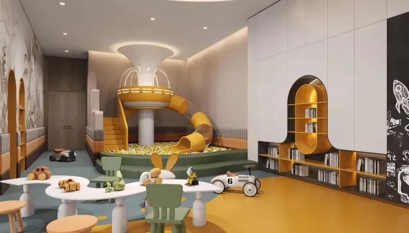 更有儿童娱乐、专业篮球场、环氧跑道、林下中央会客厅等,满足不同年龄业主的休闲娱乐需求,浮光掠影间,演绎四季流转。 春和龙畔,打破传统庭院模式,巧妙运用高低错落的手法,打造近2000㎡下沉式景观庭院邻里中心。含行政酒廊接待会客区、儿童室内游玩区、6点半学堂、健身房、私家泳池、茶室、棋牌室、私宴厅、影音室、下沉式庭院等11大邻里功能配套。