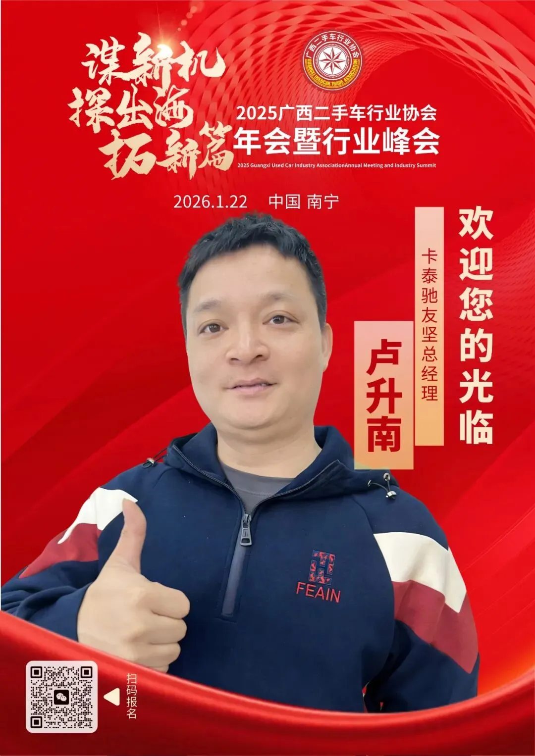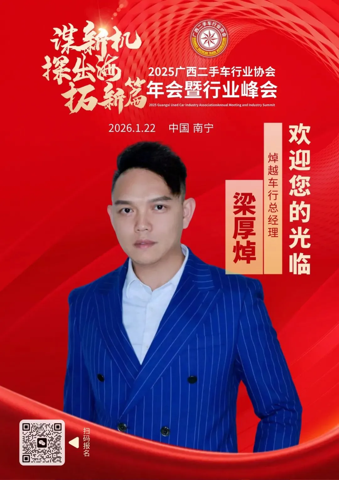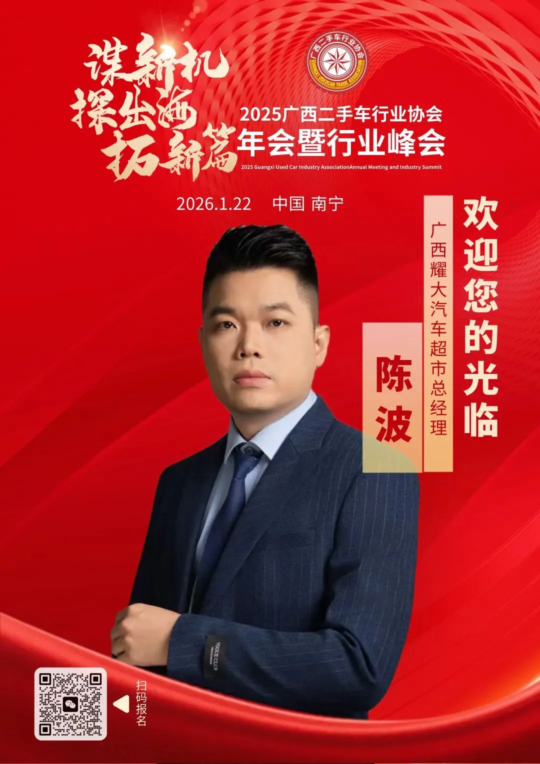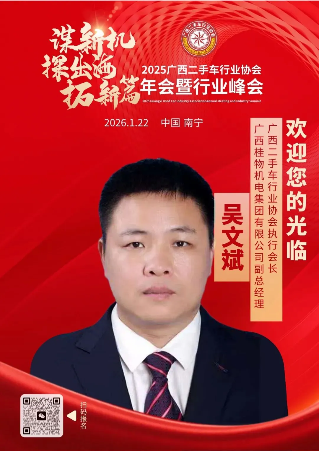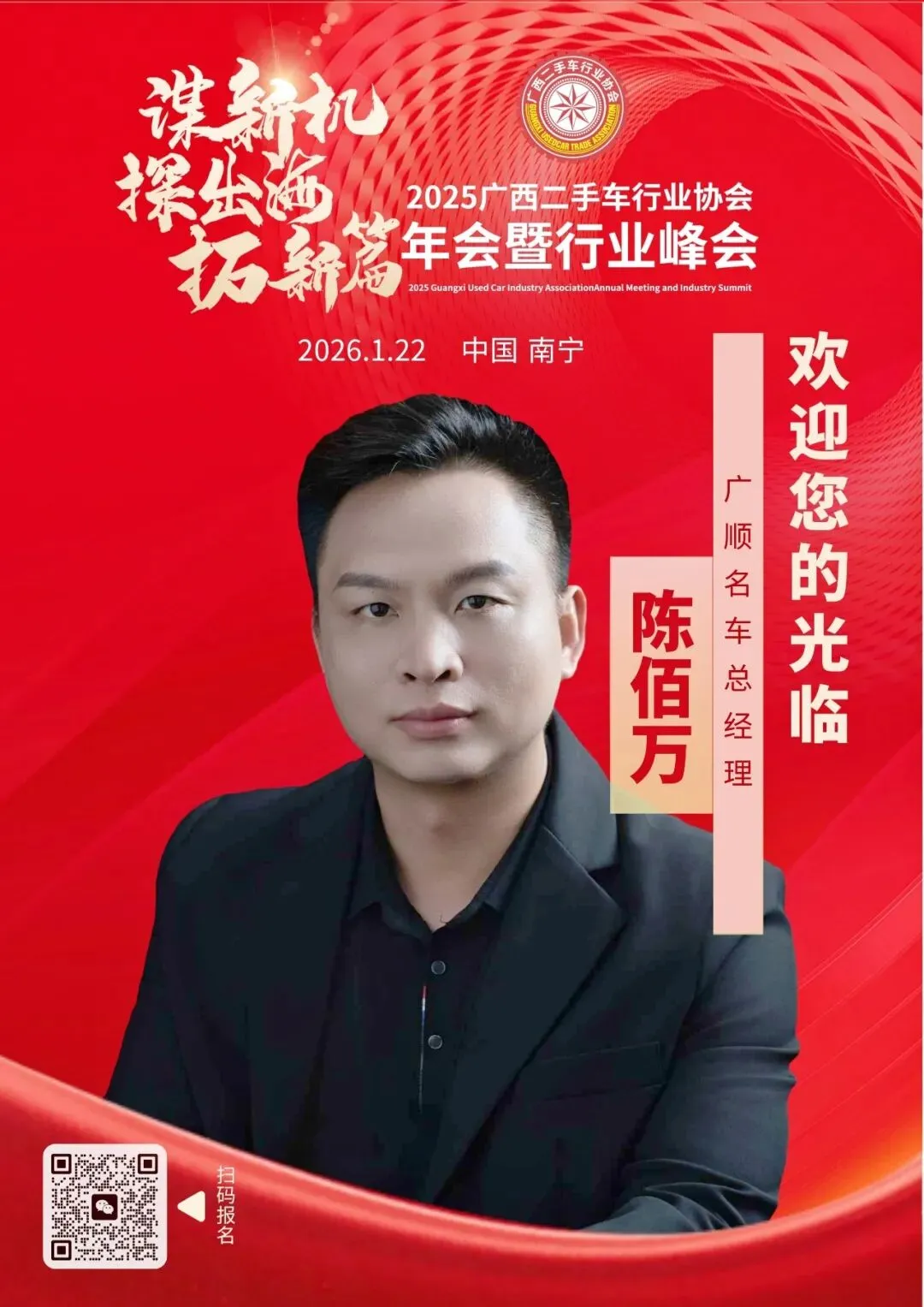 我们诚挚邀请国内在二手车行业及出口领域具备丰富经验与卓越能力的服务商、合作伙伴拨冗莅临,共同参与这一年度盛会。期待与您一起,携手开拓二手车出口新航道,助力广西二手车行业扬帆出海,共同开拓行业全新的未来。