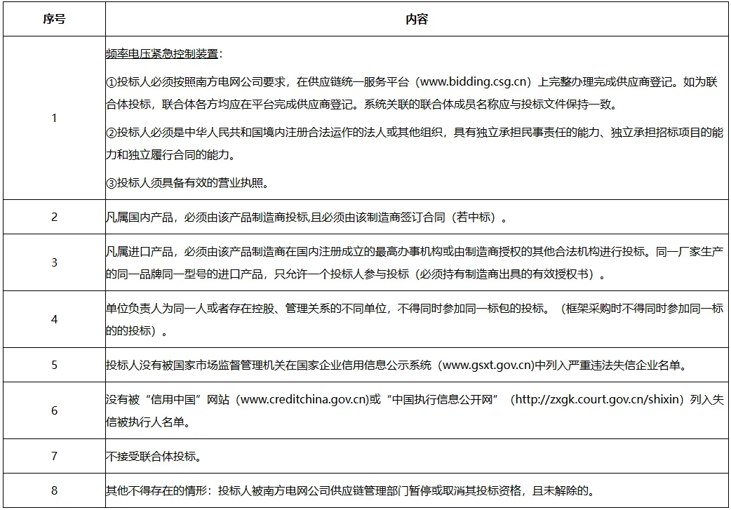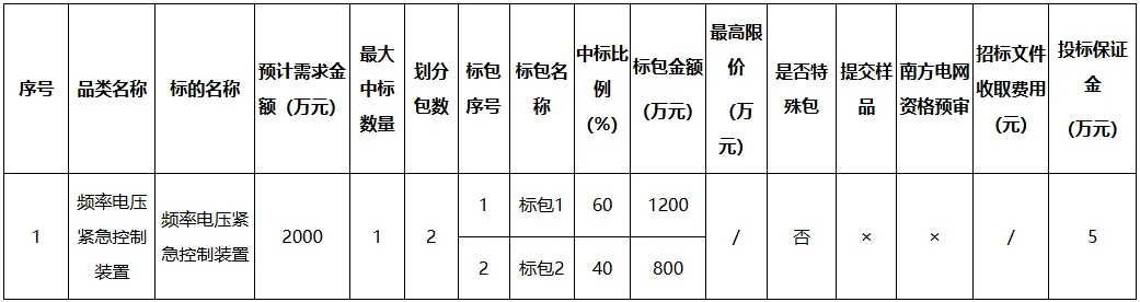 2.1项目概述:广东电网公司2025年第二批频率电压紧急控制装置框架招标,本次招标含 频率电压紧急控制装置 共 1 个物资品类。