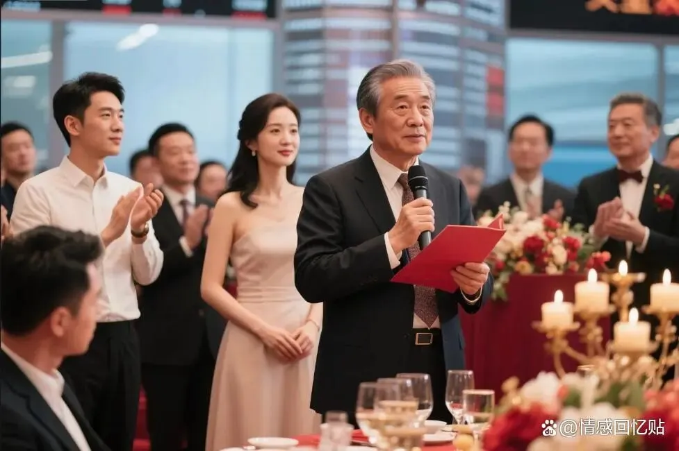 他站在人群的最中央,红光满面,挺着因常年应酬而微微凸起的肚腩,手中的高脚杯几乎要被他晃出残影。