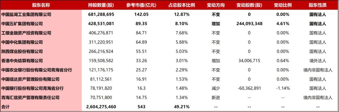 2024年:青海省国资委、青海国投与中国五矿签署协议,共同组建中国盐湖工业集团有限公司。这次战略重组使盐湖股份的控股股东变为中国盐湖集团,实际控制人变为中国五矿,标志着公司在打造“盐湖航母”、建设世界级盐湖产业基地上迈出关键一步。