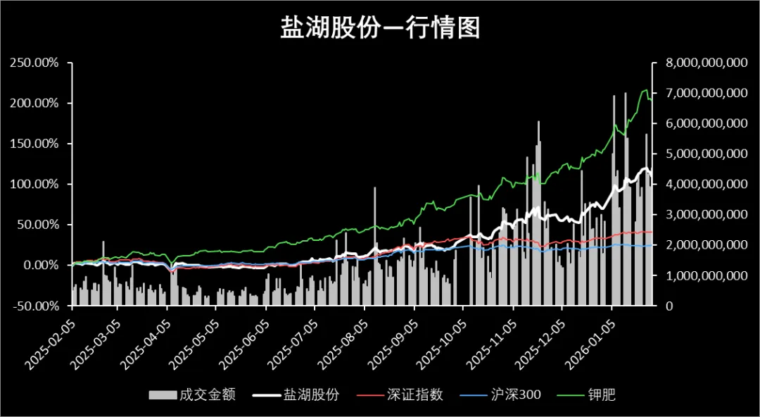 行业环境与政策营造利好氛围:钾肥保供稳价政策旨在稳定市场,而机构调研活动频繁也显示了市场对盐湖股份及其所在板块的持续关注度,这些因素共同营造了相对有利的外部环境。