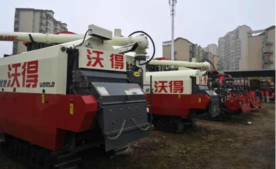 推介会上,沃得农机集中展示了多款2026年新上市的智能农机设备,包括高效联合收割机、智能播种施肥一体机等。这些新产品在智能化操作、节能环保、作业精度等方面均有显著提升,尤其注重适应贵溪本地地形与农艺需求。