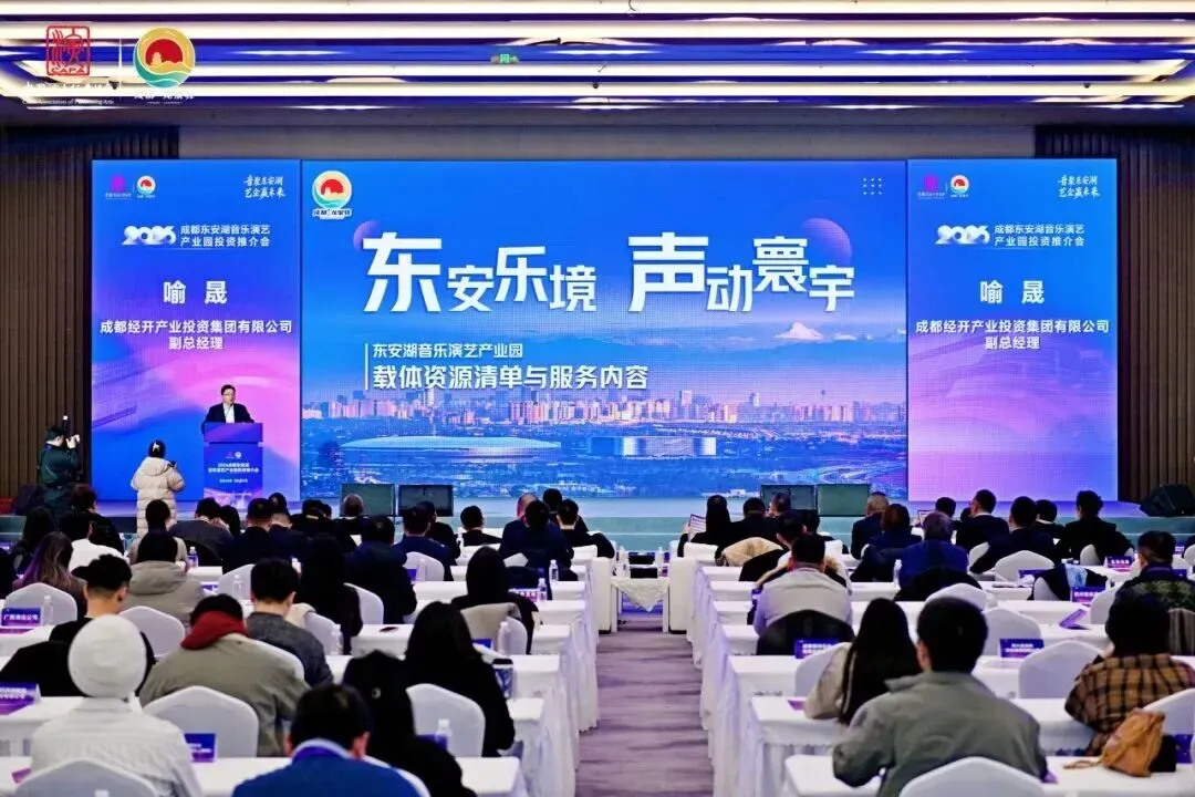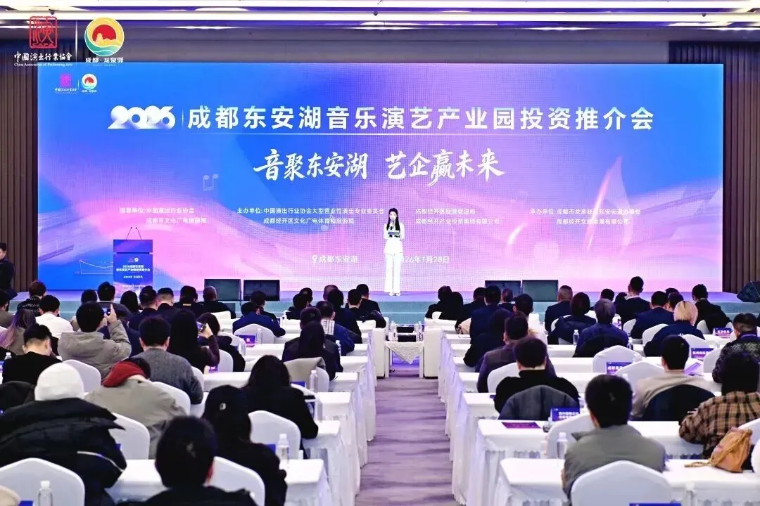 音聚东安湖,艺企赢未来。1月28日,成都东安湖音乐演艺产业园投资推介会在东安湖文化艺术中心隆重举行。国家文旅部及省市区文旅部门、中国演出行业协会相关领导, 以及来自全国近200家音乐演艺产业链重点企业代表齐聚一堂,共商合作,共谋发展。本次活动的圆满举行也标志着成都东安湖音乐演艺产业园的正式成立。