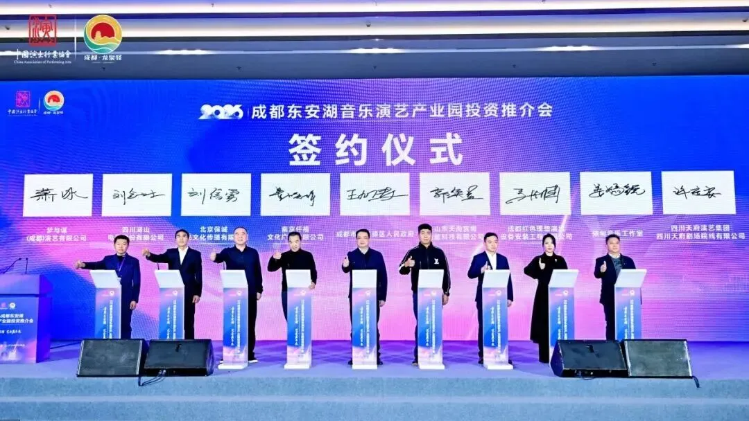本次会议通过精准对接,向来自全国各地的音乐演艺企业全面展示了龙泉驿区的产业生态、政策优势与投资价值。会上,北京京奇非凡影视文化有限公司等24家企业与园区运营主体成都经开文旅发展有限公司签订了落地合作协议,为龙泉驿区音乐演艺产业协同发展注入了强劲动能。