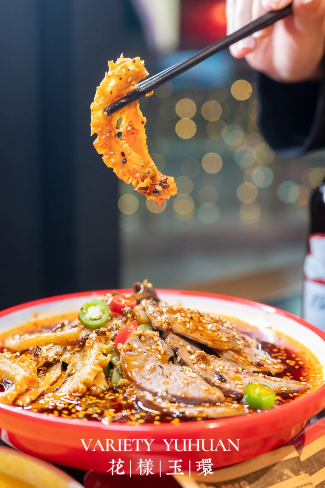 芝麻、花椒、秘制红汤等各种佐料的香气充分融合,汤汁包裹着食材,一口下去,鲜味瞬间弥漫整个口腔,令人回味无穷。