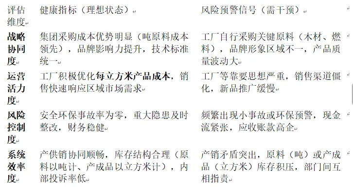 人造板行业具有显著的资源依赖性强(木材原料)、生产过程连续、成本构成中原材料占比高、安全环保风险突出、产品同质化竞争与差异化需求并存等特点。集团化发展过程中,面临如下核心治理挑战: * 如何实现大宗原料的集中采购降本与保障稳定供应? * 如何平衡产品标准化生产与区域市场差异化需求? * 如何将严苛的安全生产(如粉尘防爆)与环保标准(如甲醛释放、废水处理)穿透执行至每个工厂? * 如何统筹全国性品牌与渠道建设,同时激发区域销售能动性?
