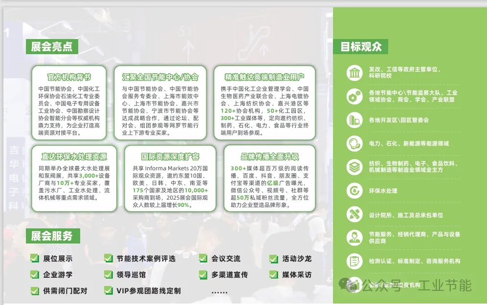 随着《制造业绿色低碳发展行动方案(2025-2027年)》的提出,中国的新型工业化进程已进入“高端化、智能化、绿色化”转型的关键阶段。长三角作为先行示范区,将率先探索“零碳园区”“绿色工厂”等实践,构建数字与绿色融合的制造产业集群,推动新能源、半导体、制药、石油、化工、钢铁等重点行业的技术创新和深度改造。依托世环会强大的资源与国际化平台,集中呈现工业领域的绿色环境技术、产品和方案,同时也展现工业领域的通用设备节能改造、节能节水等在绿色制造转型过程中的成果展示,这些关键性技术正符合了国家对于“双碳”政策的要求,随着绿色制造理念化的不断深入,环保视角开始向“生产环节的节能”方向延伸,企业不再满足于事后处理,而是将节能技术嵌入生产全流程,节能改造不仅限于创造环境效益,更能直接转化为经济效益,当下这场绿色转型正迎来更深刻的变革,让制造业生产从“高碳到低碳,从制造到智造”。
