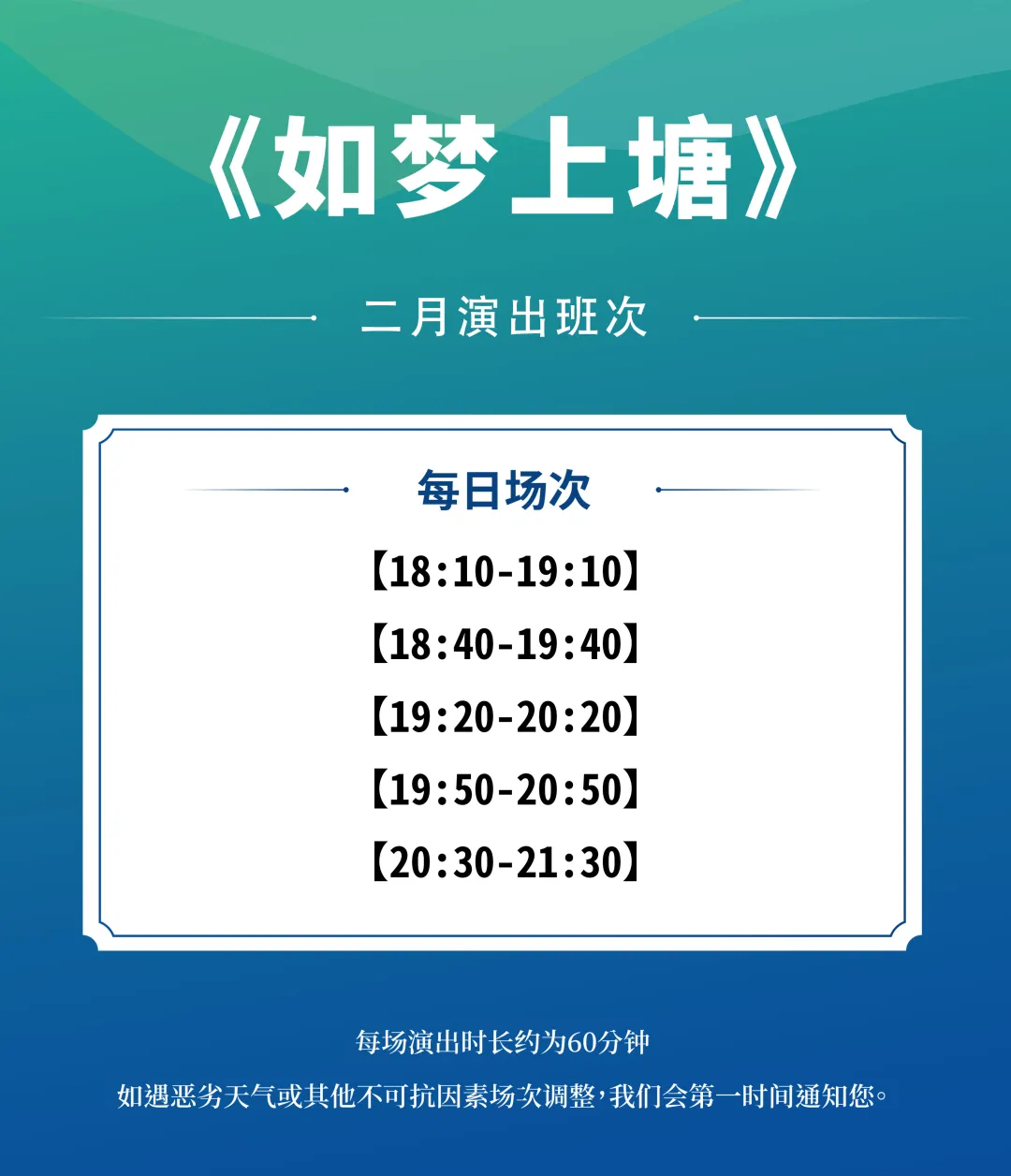 每天18:40-21:30(具体见二月演出班次)