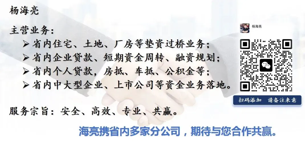 最后,我一名深耕河南多年的助贷从业者,主要为个人及企业提供过桥资金及融资服务,欢迎企业和同行深度链接,合作共赢。