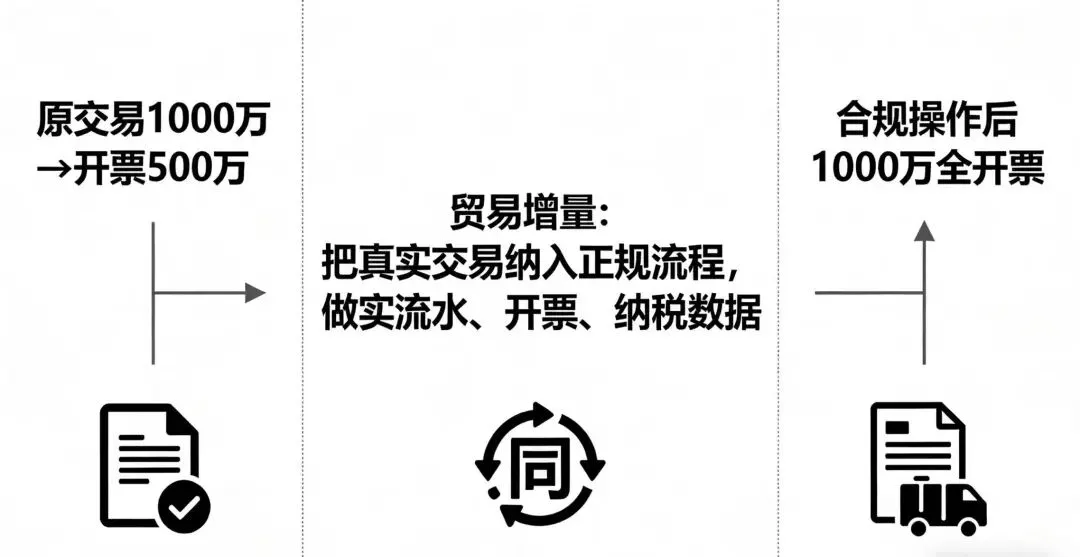 比如你原本一年真实交易1000万,但只开票500万。现在通过合规操作,把这1000万全部纳入正规流程,这就是“增量”。