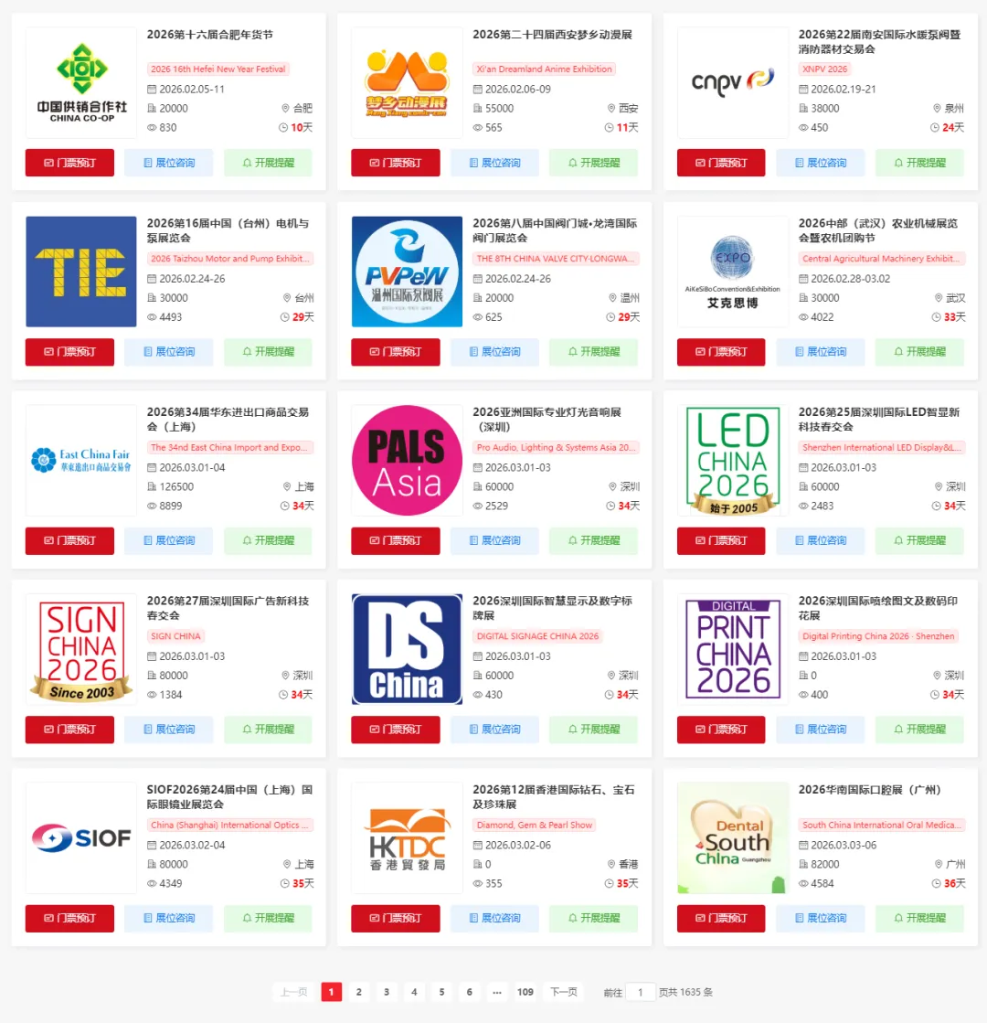 识别二维码进入页面,找到需要的展会点击门票预约即可~