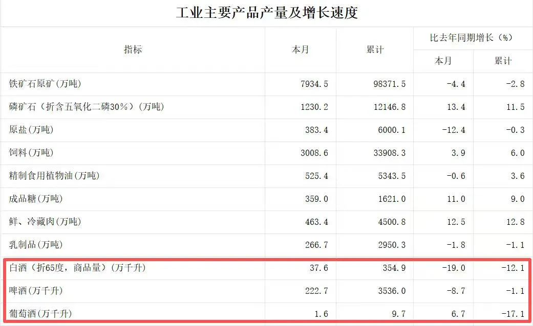 此外,本次国家统计局的数据还显示,除了白酒之外,啤酒、葡萄酒的产量也均呈现下滑态势,分别较2024年下降了1.1%和17.1%,国内酒类市场表现均以下跌收尾。
