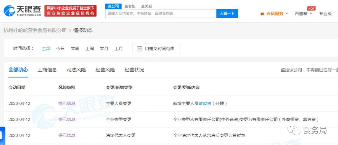 值得一提的是,近日,宗庆后还卸任了杭州娃哈哈非常可乐饮料有限公司法定代表人,同样仍担任董事长一职。
