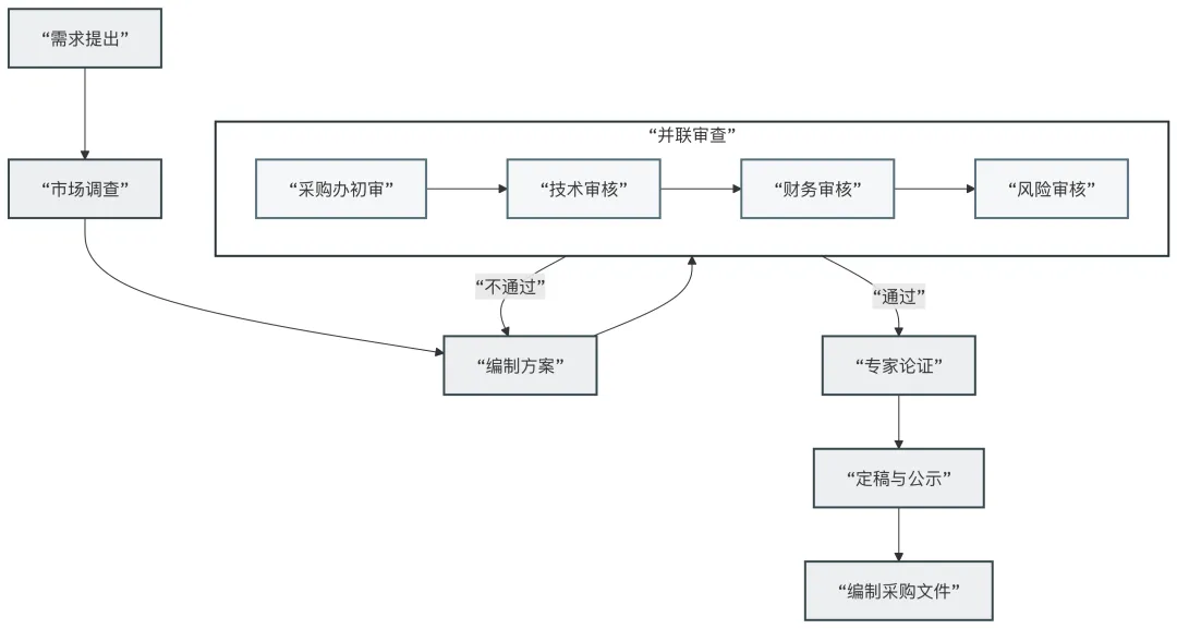 下图展示了从需求提出到形成采购文件的标准闭环管理流程:第十三条 专家论证适用情形