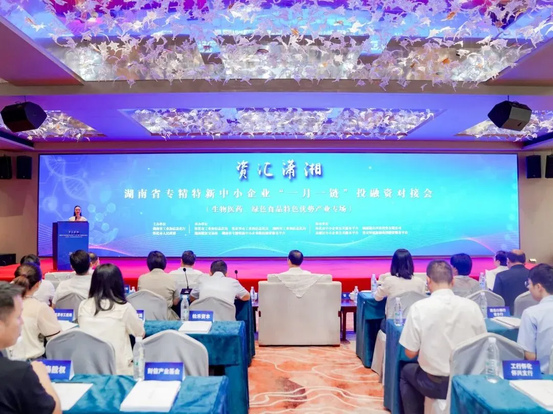 7月29日,由湖南省工业和信息化厅、怀化市人民政府联合主办的湖南省专精特新中小企业“一月一链”生物医药、绿色食品特色优势产业投融资对接会在怀化隆重举行。本次活动是专精特新中小企业融资需求系列对接会的第五场。湖南省工业和信息化厅党组成员、副厅长刘卫东出席会议并讲话,怀化市委常委、副市长邹兴旺致辞。省内外优质投资机构代表、专精特新中小企业负责人、各市州工信部门及各区县政府部门代表200余人参会。习近平总书记强调中小企业能办大事,中小企业有灵气、有活力,要求激发涌现更多专精特新企业。刚刚结束的党的二十届三中全会提出要“完善民营企业融资支持政策,破解融资难、融资贵问题”“发展多元股权融资,加快多层次债券市场发展,提高直接融资比重”。中央金融工作会议强调要把更多金融资源用于促进科技创新、先进制造、绿色发展和中小微企业。省委金融委员会召开第一次全体会议,强调要提升金融活跃度,持续为全省高质量发展注入“源头活水”。
