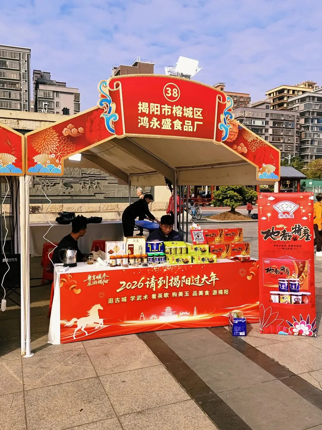 选址揭阳楼广场这一文化地标,展会延续了元旦英歌展演的热烈氛围,现场布置充满节庆特色。市民在购物之余,感受古城文化魅力,进一步提升了活动的综合体验。