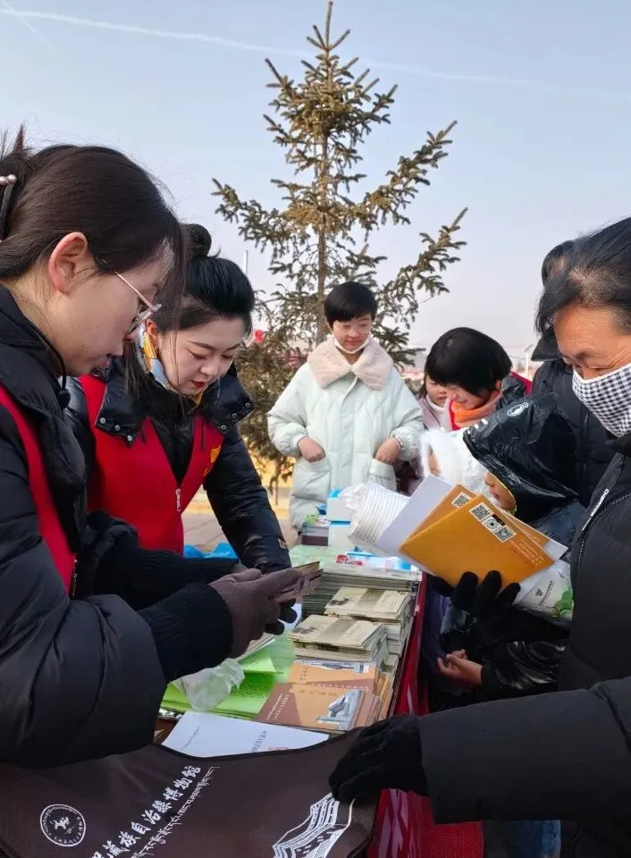 阳光和煦,锣鼓喧天。1月30日,武威市2026年文化科技卫生“三下乡”集中示范活动在天祝县华藏寺镇中庄村火热进行。在众多惠民服务点中,天祝县博物馆带来的“流动博物馆”四进活动展位,以其浓郁的历史文化气息,成为现场一道独特的风景线,吸引着乡亲们层层围观。