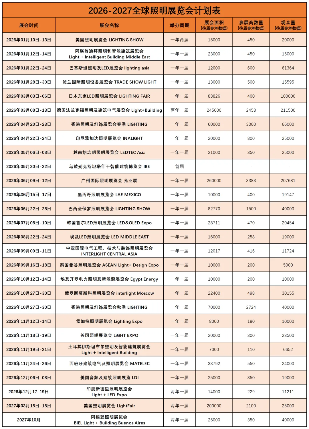 2026年照明行业国际展会目录