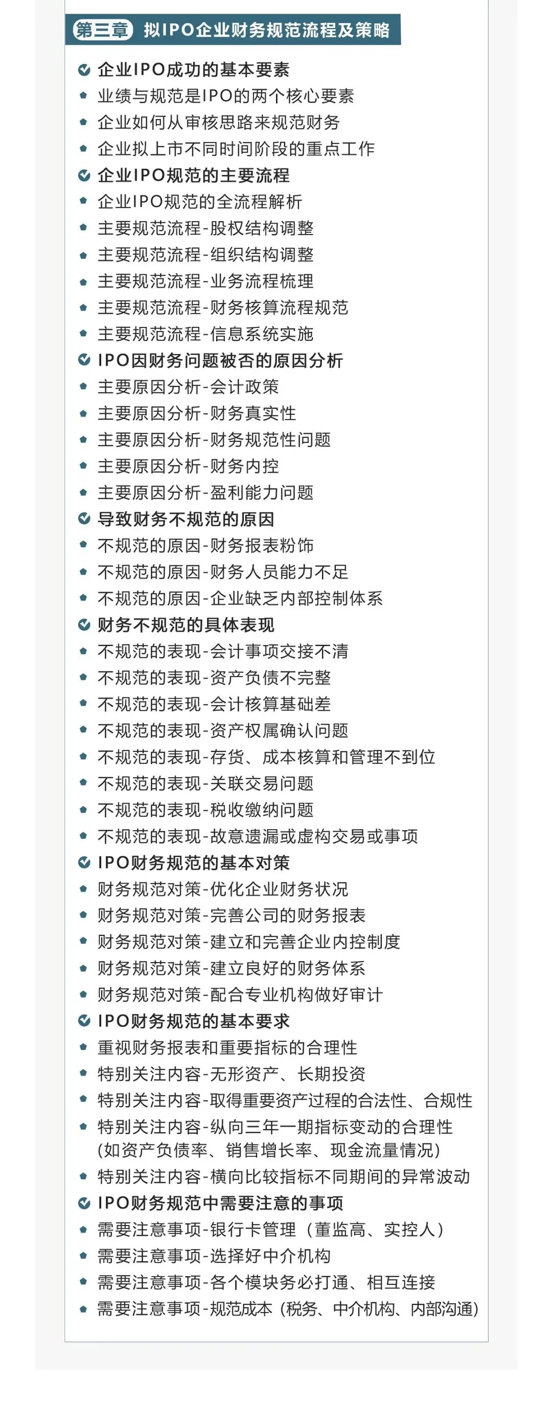 随着企业的发展壮大,实现上市已经成为许多企业家的梦想。企业通过上市能广泛吸收社会资金,迅速扩大企业规模,提升企业竞争力。然而企业上市是一项复杂而又漫长的系统工程,需要在诸多方面提前做好安排和规范,其中财务是最为关键的事项。但很多企业在上市之前的发展过程中,由于长期对财务不重视或缺少良好的财务规划,留下了很多历史遗留问题,这使得企业上市一推再推,直接影响IPO审核进度。所以财务是否规范化已成为IPO成功的关键。财务不规范的问题很多,比如有遗留账务未处理、会计核算不合规、资产负债不完整、内部控制不完善等,有企业税务问题突出,导致财务核算比较混乱。如何让有计划上市的企业实现财务规范,是摆在每一家拟IPO公司面前的首要难题。不论是企业财务、董秘、管理者,还是投行以及会计师、律师等人士,系统掌握拟上市企业的财务规范意义重大。为此华尔街学堂邀请资深专家开设《拟上市企业财务规范实务》专题课。老师将结合最新上市审核要求及典型被否案例,从实务的角度进行全面解析,旨在系统提升大家的实战能力。