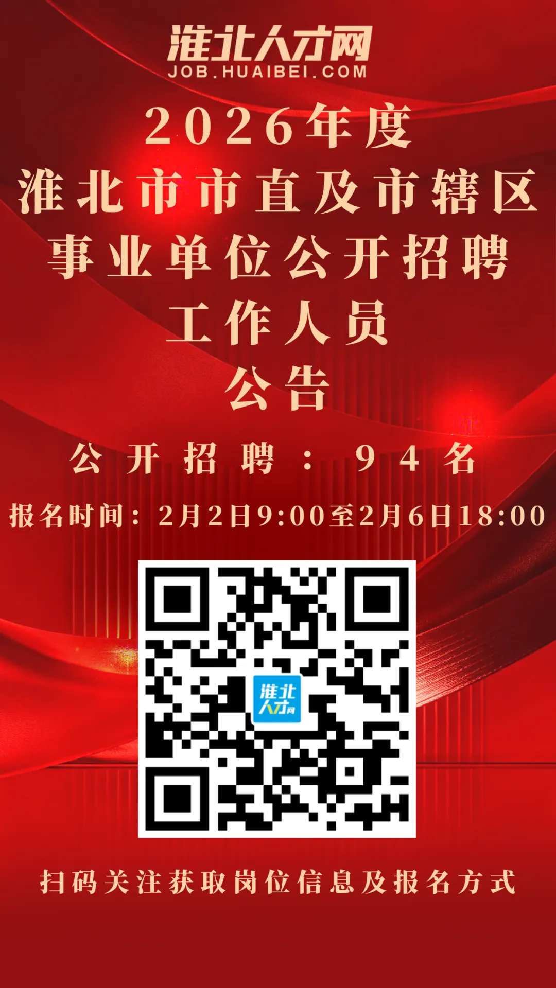 根据《事业单位人事管理条例》和《安徽省事业单位公开招聘人员暂行办法》等有关规定,现就2026年度淮北市市直及市辖区事业单位公开招聘工作人员有关事项公告如下: