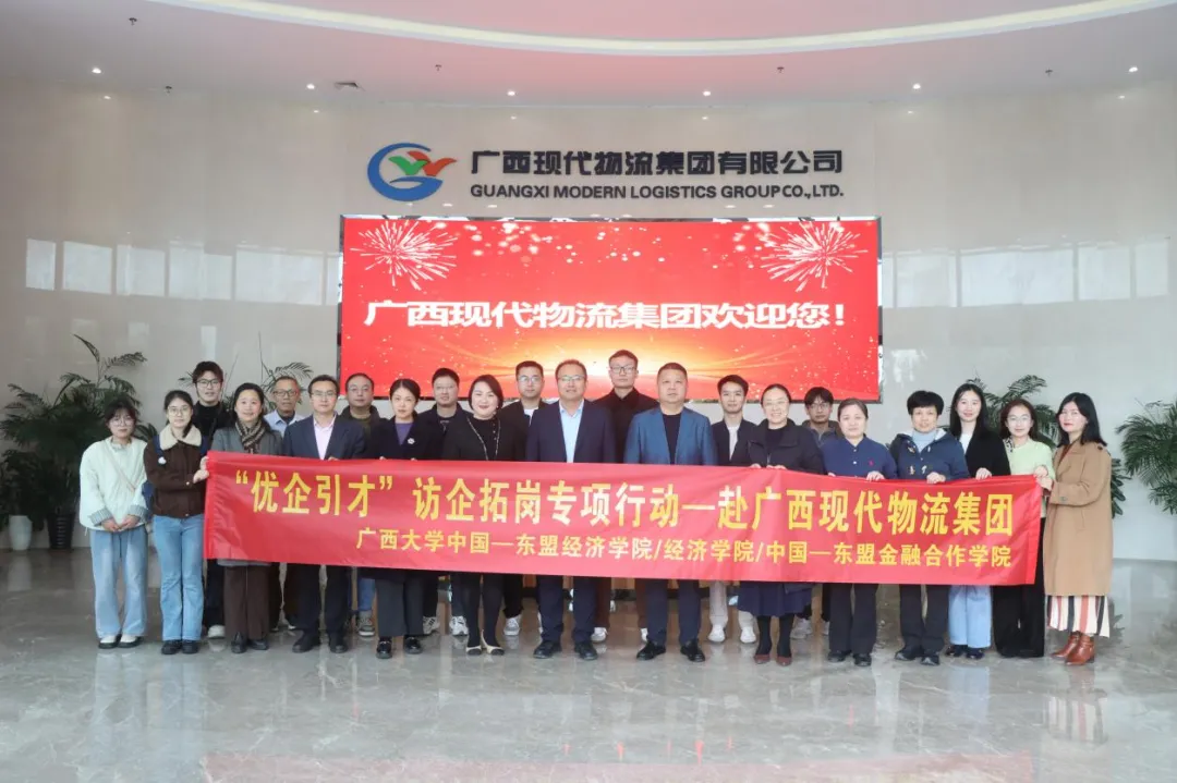 为深入贯彻教育部“访企拓岗促就业”专项行动精神,精准对接产业需求,拓宽毕业生就业渠道,1月26日,中国—东盟经济学院/经济学院/中国—东盟金融合作学院师生代表一行22人在党委书记姜玮带领下,赴广西现代物流集团有限公司、广西五洲交通股份有限公司开展专题调研与座谈交流,推动校企协同育人走深走实。