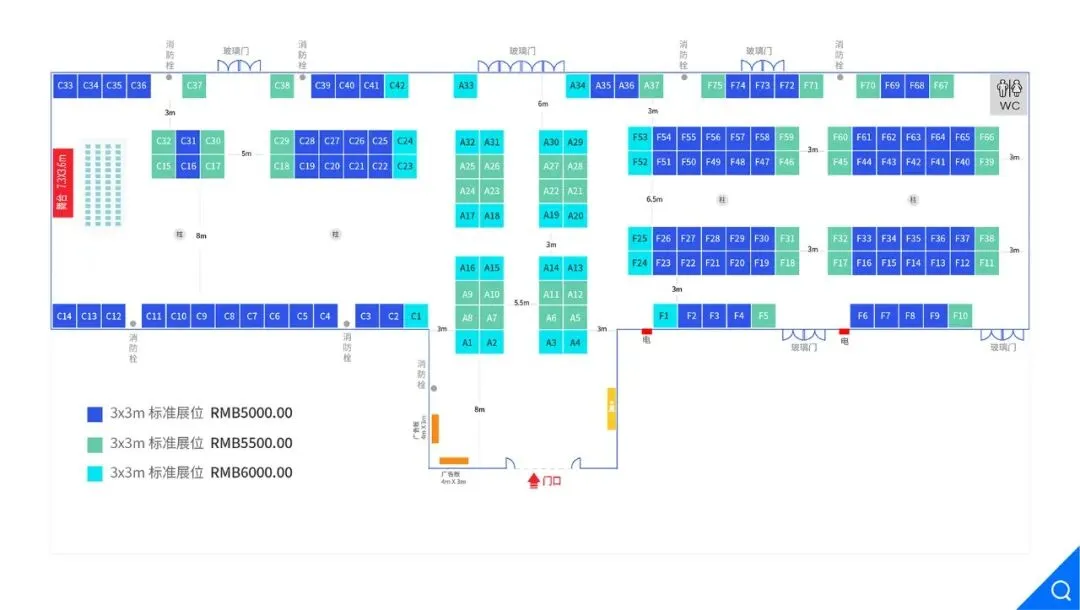 3x3m 标准展位:5000元/个