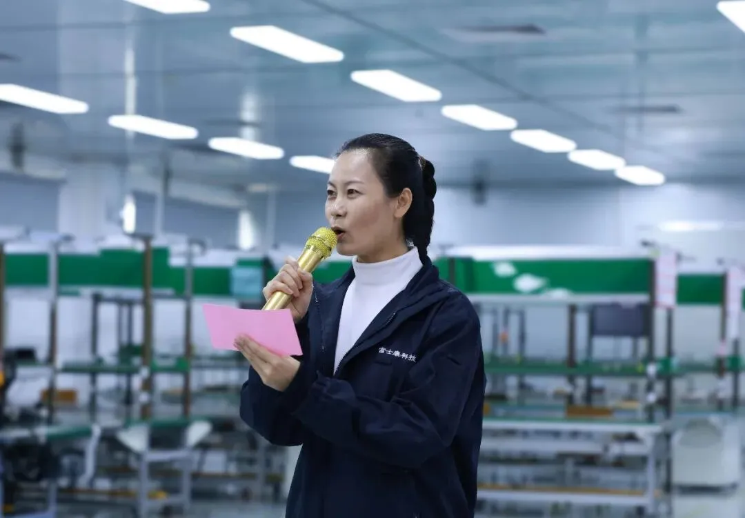 林文信资深经理上台致辞,感谢各位主管百忙之中抽空见证烤漆线体的剪彩仪式,新的线体、新的开始,愿大家2026年生意兴隆!陈俊武处长、吴思佚资深经理、马予峰资深经理也同步致辞祝贺线体圆满建成,祝大家马年大吉!马上有钱!