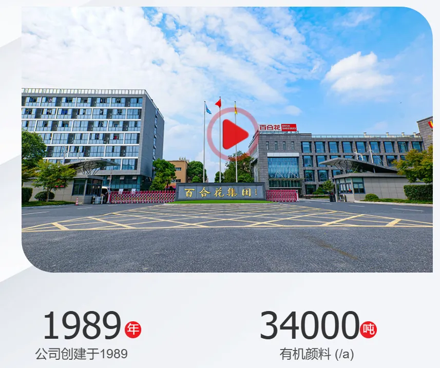 百合花集团股份有限公司成立于1989年10月,主要生产各种高性能有机颜料和颜料中间体,下属主要子公司有杭州百合科莱恩颜料有限公司、宣城英特颜料有限公司、杭州弗沃德精细化工有限公司等。拥有国家级企业技术中心,国家级博士后工作站,省级重点企业研究院等创新平台。2016年12月20日公司在上海证券交易所上市(股票代码603823)。
