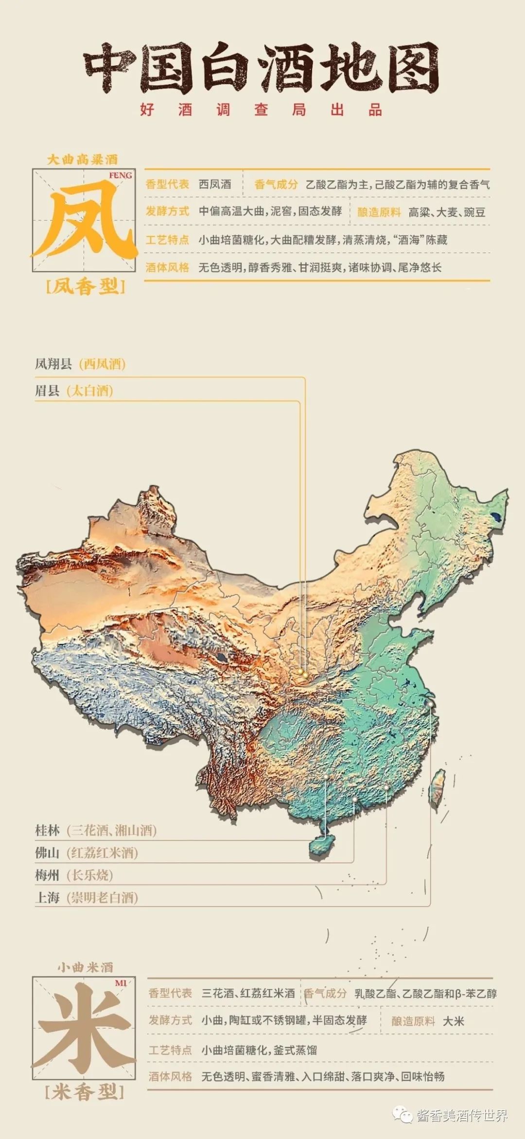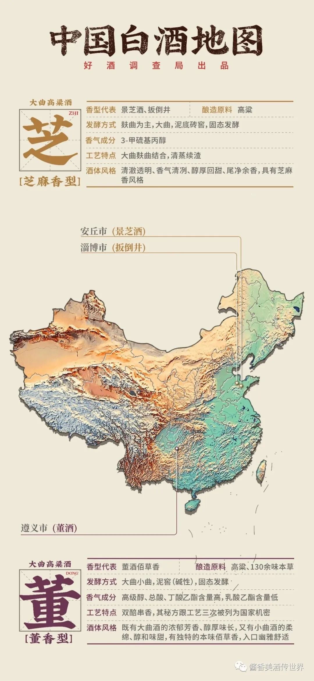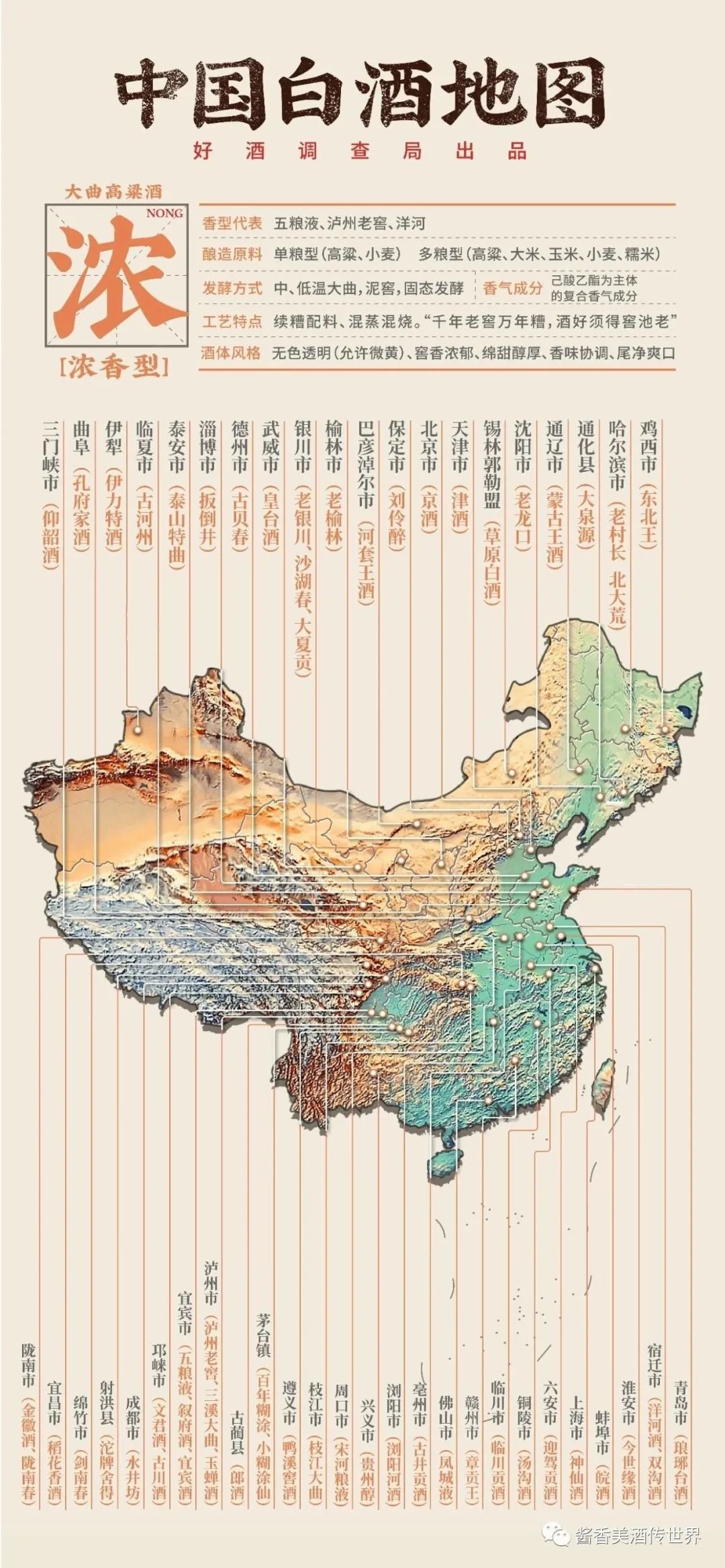 清香型白酒,以缸为发酵容器,所以不受窖池的限制,缸到哪里,清香到哪里,没有复杂的窖池。从清末开始,很长一段时间,清香汾酒一直影响着我国白酒市场,汾酒的传播版图也是最大的。而此图却少了一个大曲清香、国家名酒——武汉黄鹤楼。还有青稞酒目前也是清香工艺。